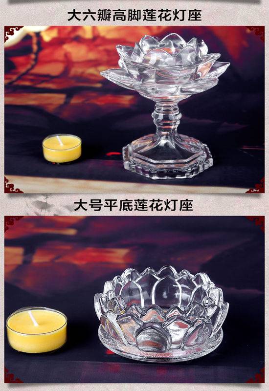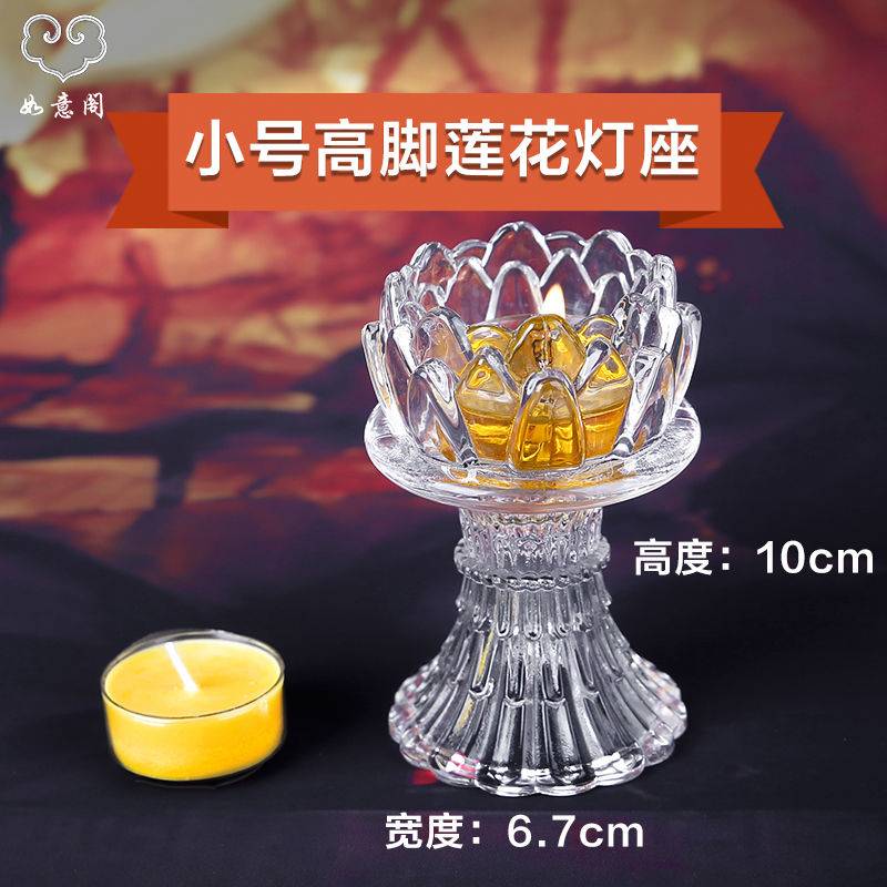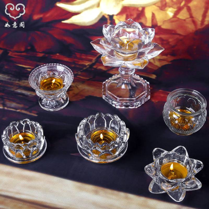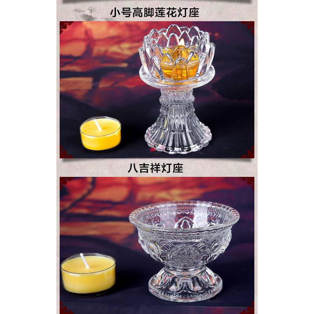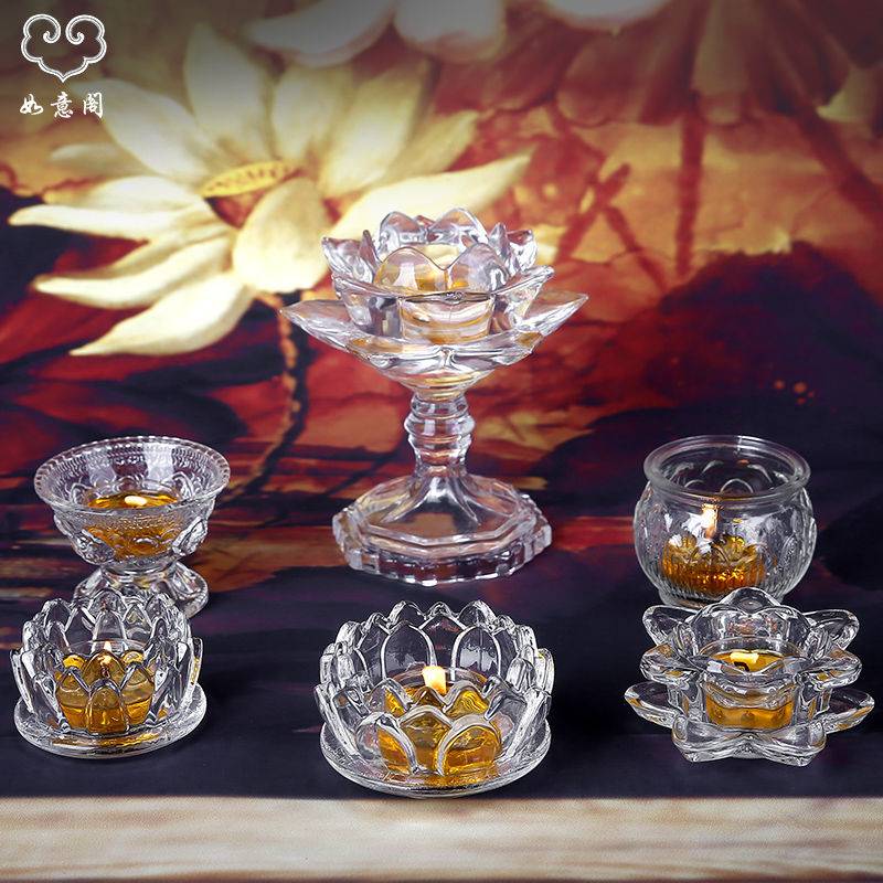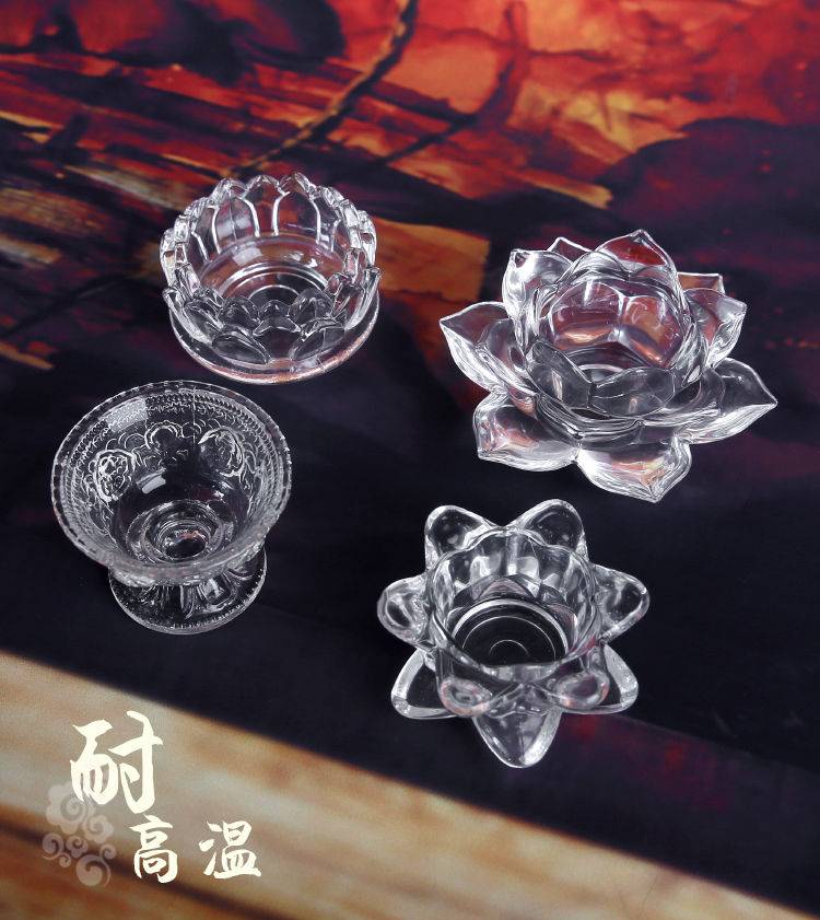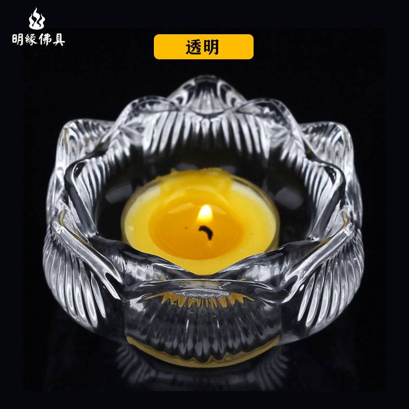 Crystal Glass Lotus Flower Candle Tea Light Holder Buddhist Candlestick / Buddha Butter Lamp High Temperature Resistant Lotus Glass Temple Household Lamp Holder