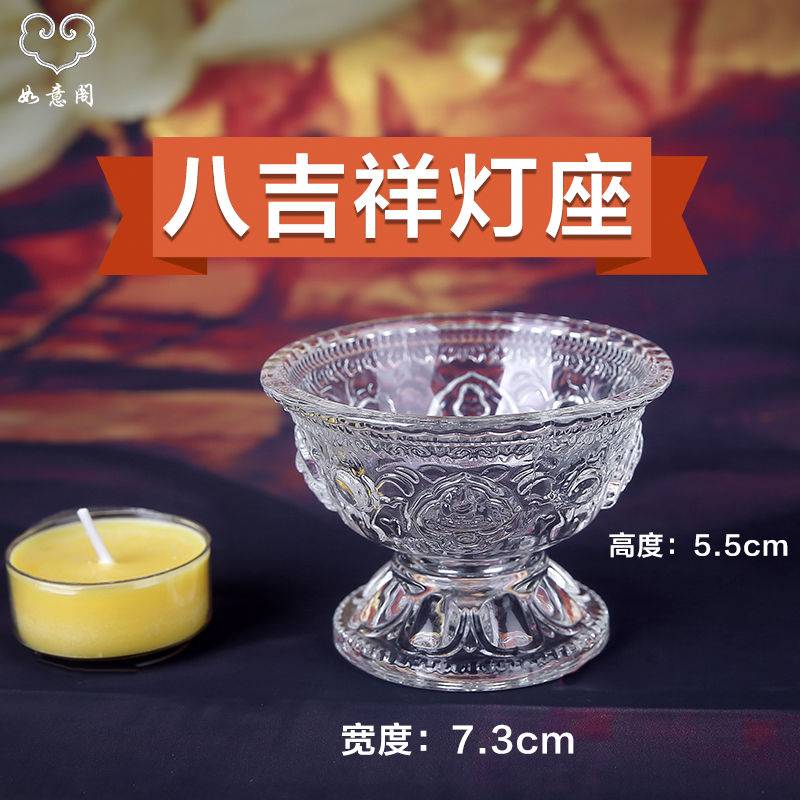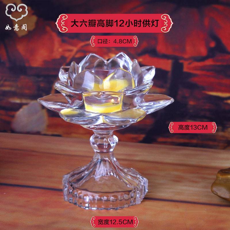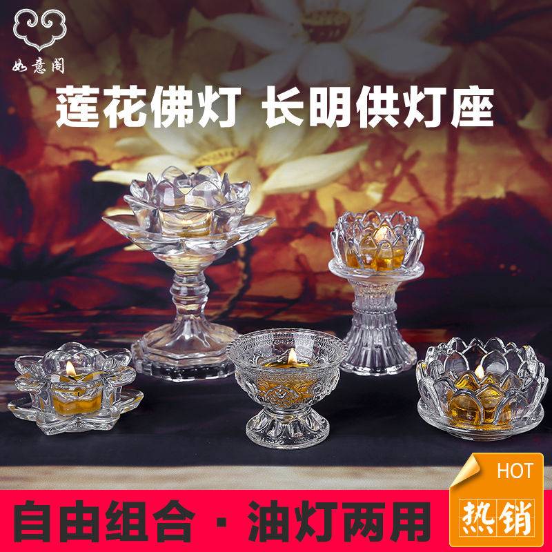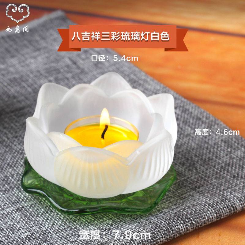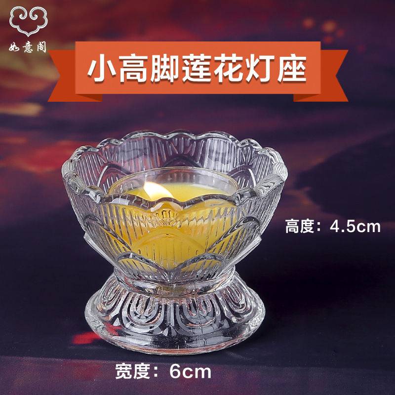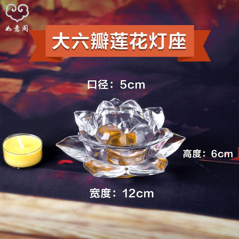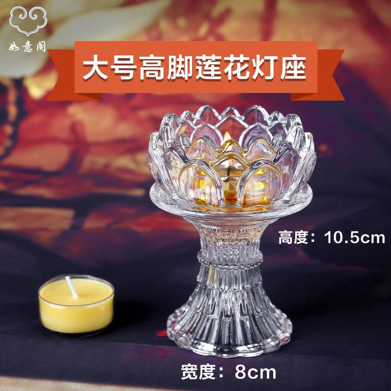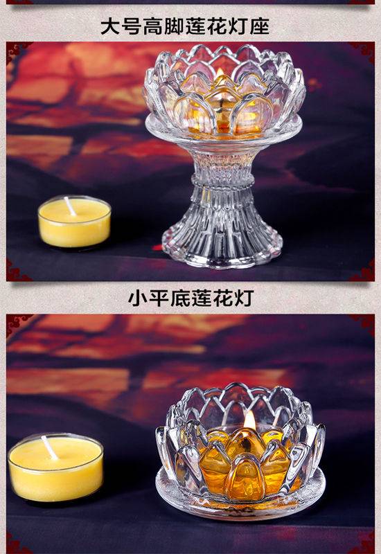 Crystal Glass Lotus Flower Candle Tea Light Holder Buddhist Candlestick / Buddha Butter Lamp High Temperature Resistant Lotus Glass Temple Household Lamp Holder