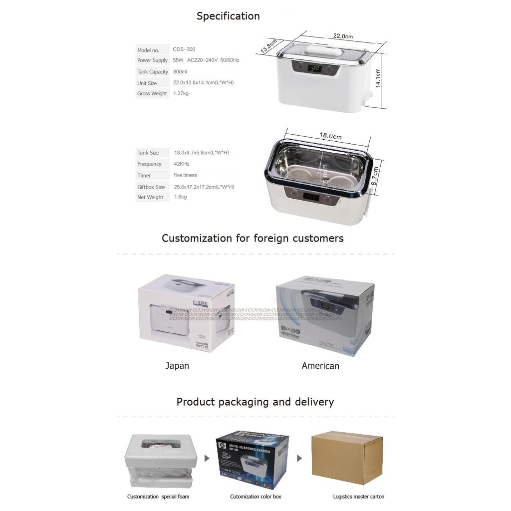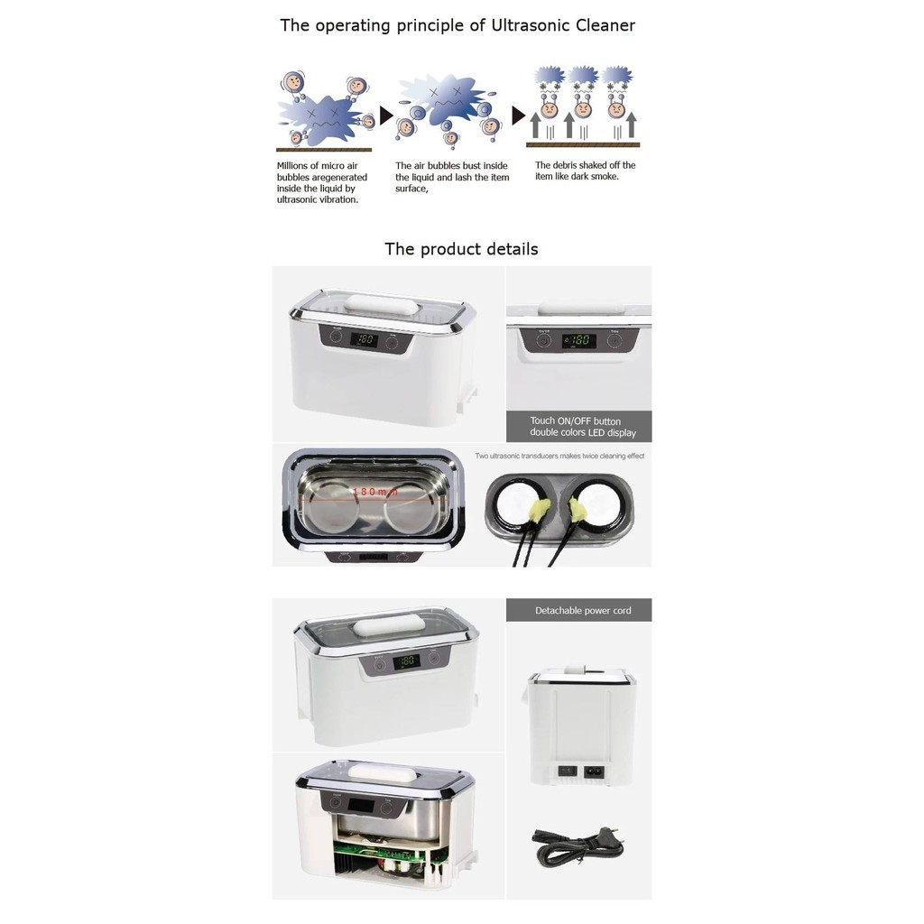 Ultrasonic Cleaner Stainless Steel 800ml Ultrasonic Sterilizer Washer (Jewelry Watch Glasses Coins) (K)