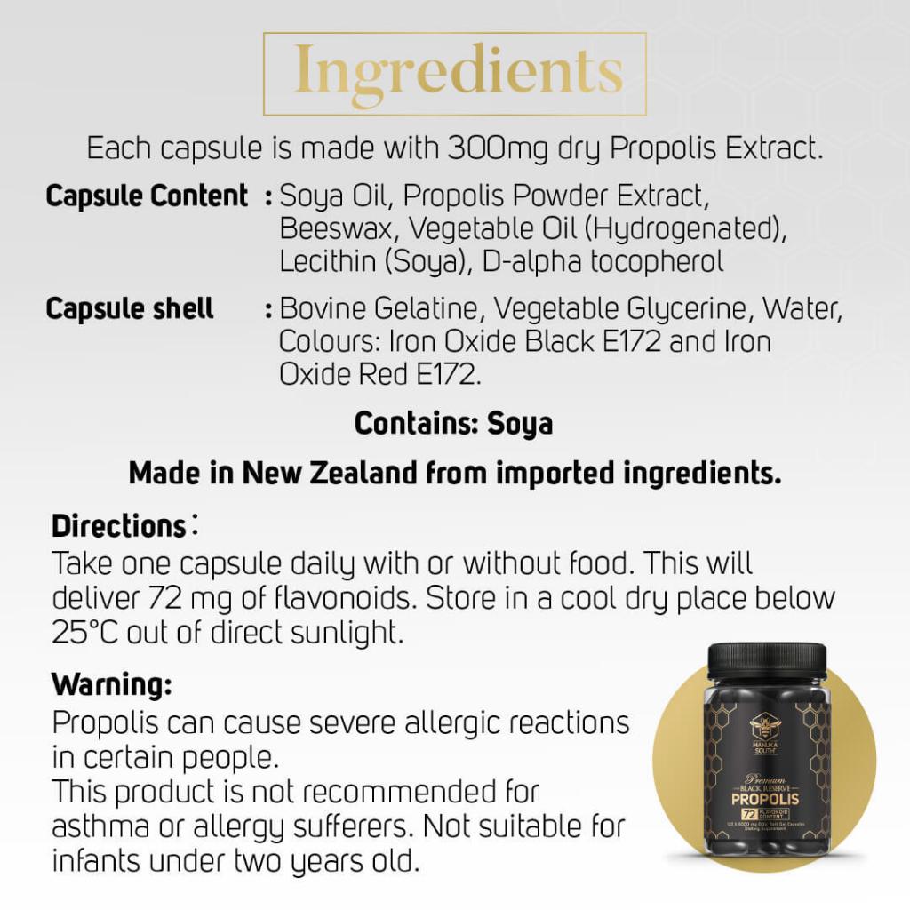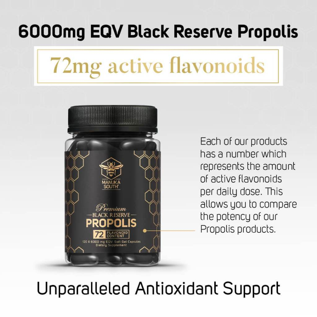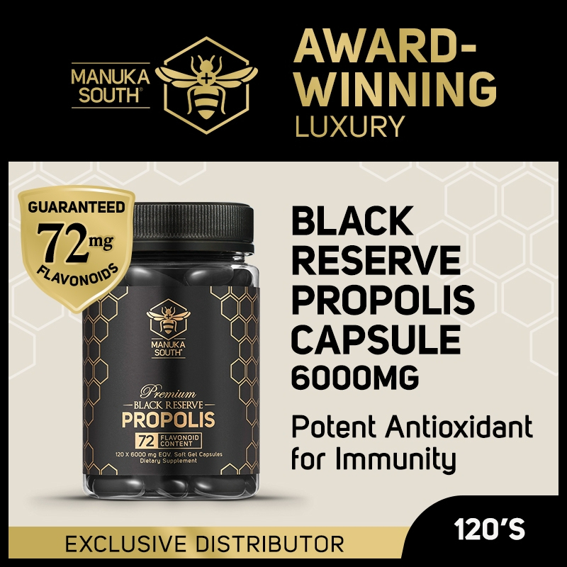 Manuka South Black Reserve 6000mg Propolis with polyphenol flavonoid antioxidant for immunity anti-inflammation 120s