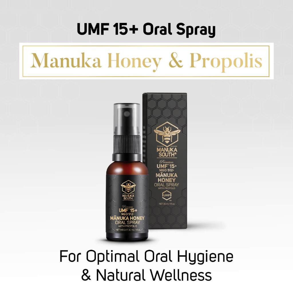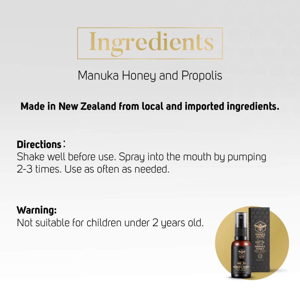 Manuka South UMF 15 Oral Spray with Manuka Honey & Propolis 30ml for Cough Sore Throat Ulcer Gum Bad breath Immunity