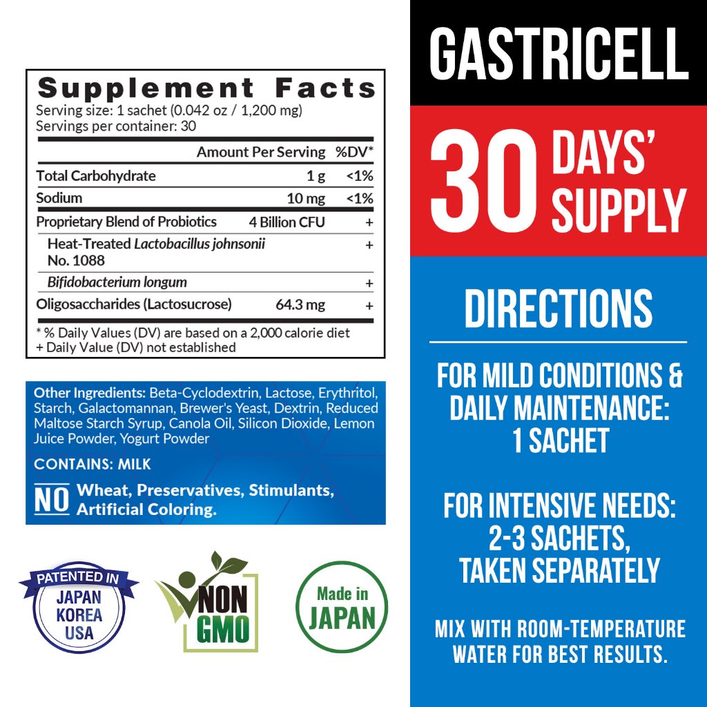 LABO GastriCELL Sachets - Eliminate Gastric Symptoms - For Acid Reflux Heartburn Bloat Indigestion Burping