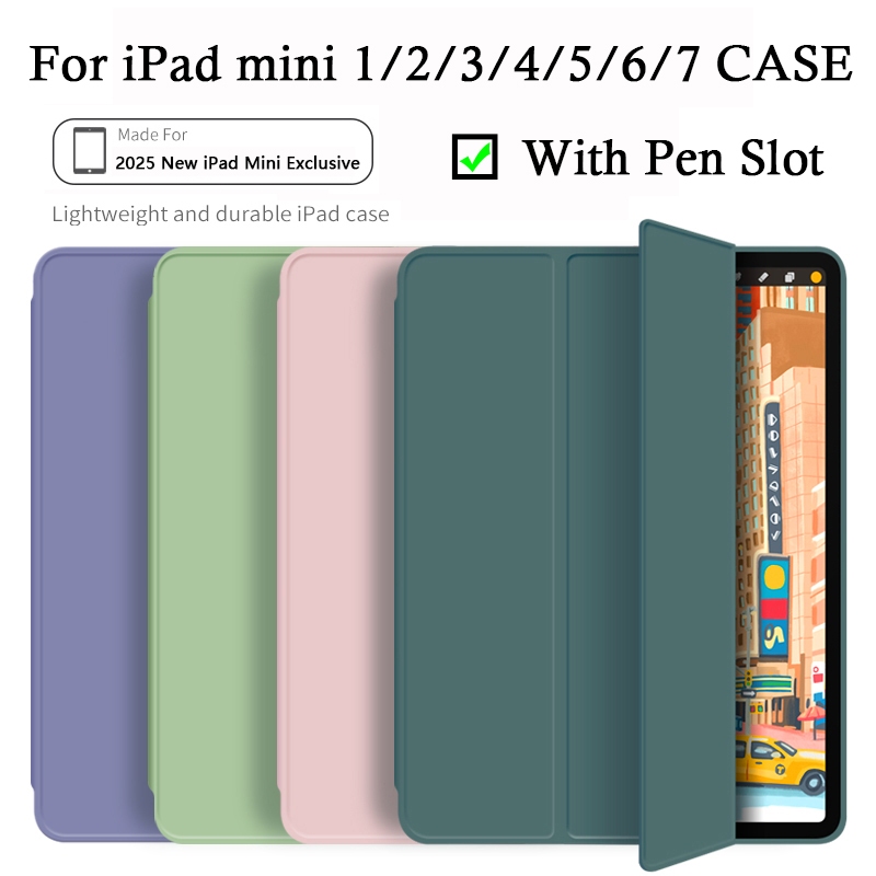 2025 New For iPad mini 1 2 3 4 5 6 7 Magnetic Tri-Fold Bracket Drop-proof with Pen Slot Thin and Auto Wake Up Sleep Case