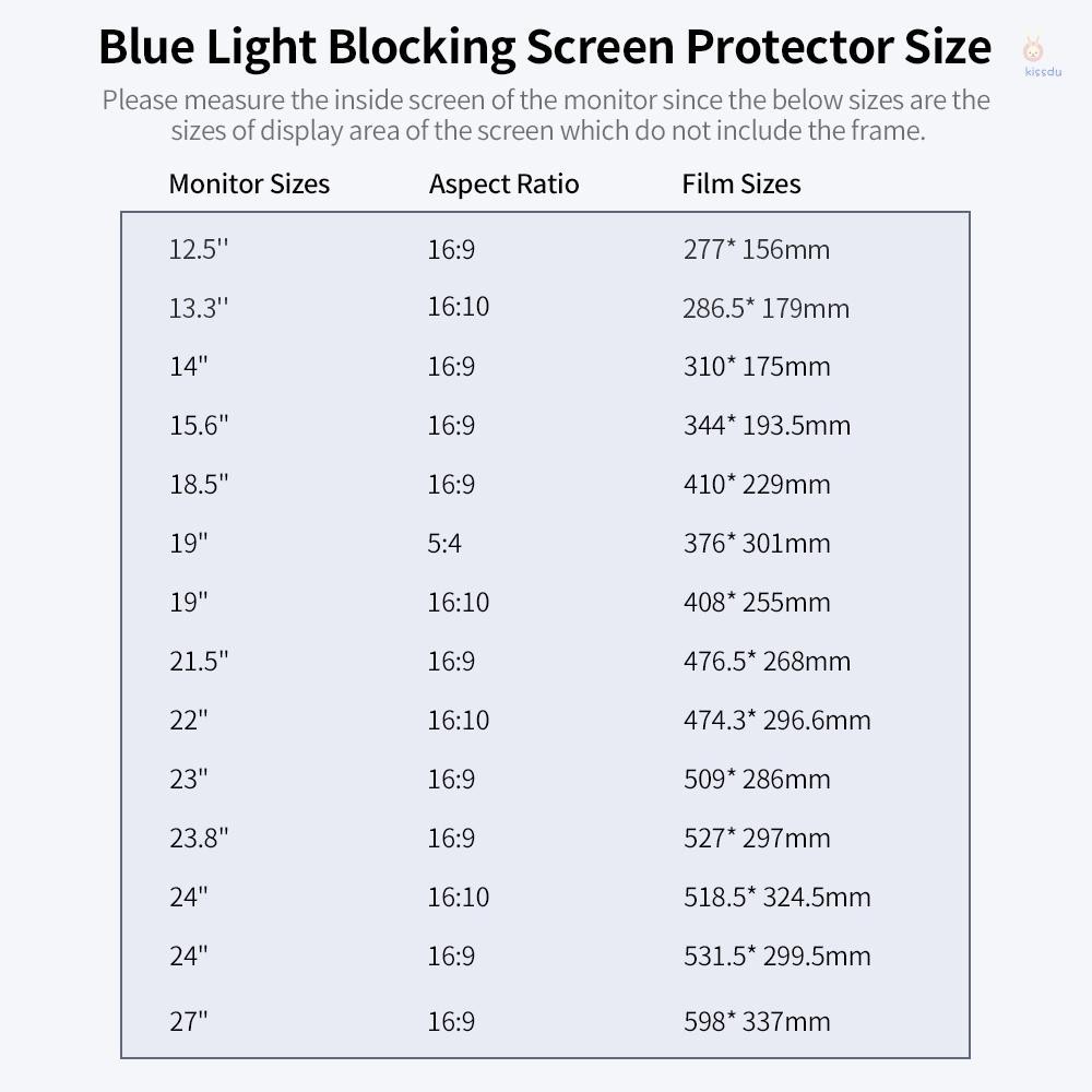 Blue Light Blocking Screen Protector High Transmittance/Anti UV&Glare Blue Light Filter for 24'' Monitor with 16:9 Aspect Ratio
