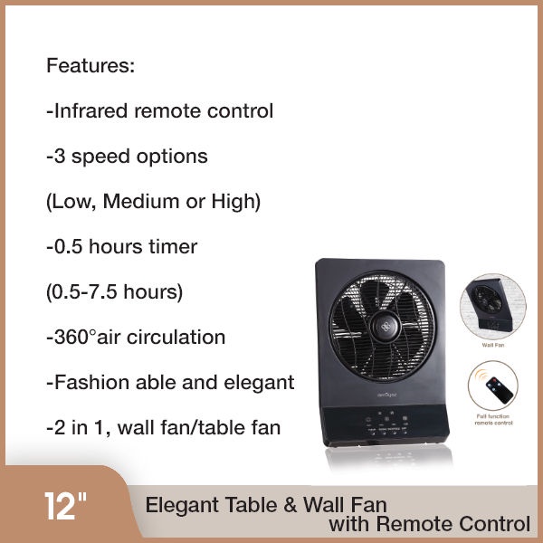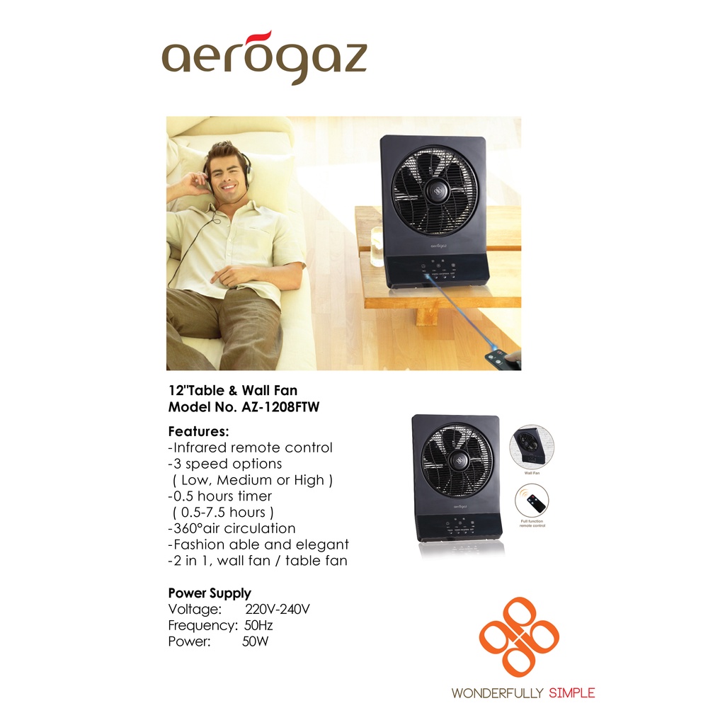 Aerogaz 12 Inch Table & Wall Fan (AZ-1208FTW)