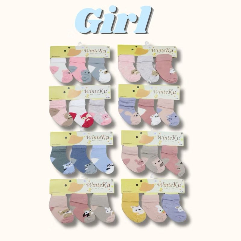 Winteku Premium Socks 3 Pairs of Baby Doll Socks 0-6 Months