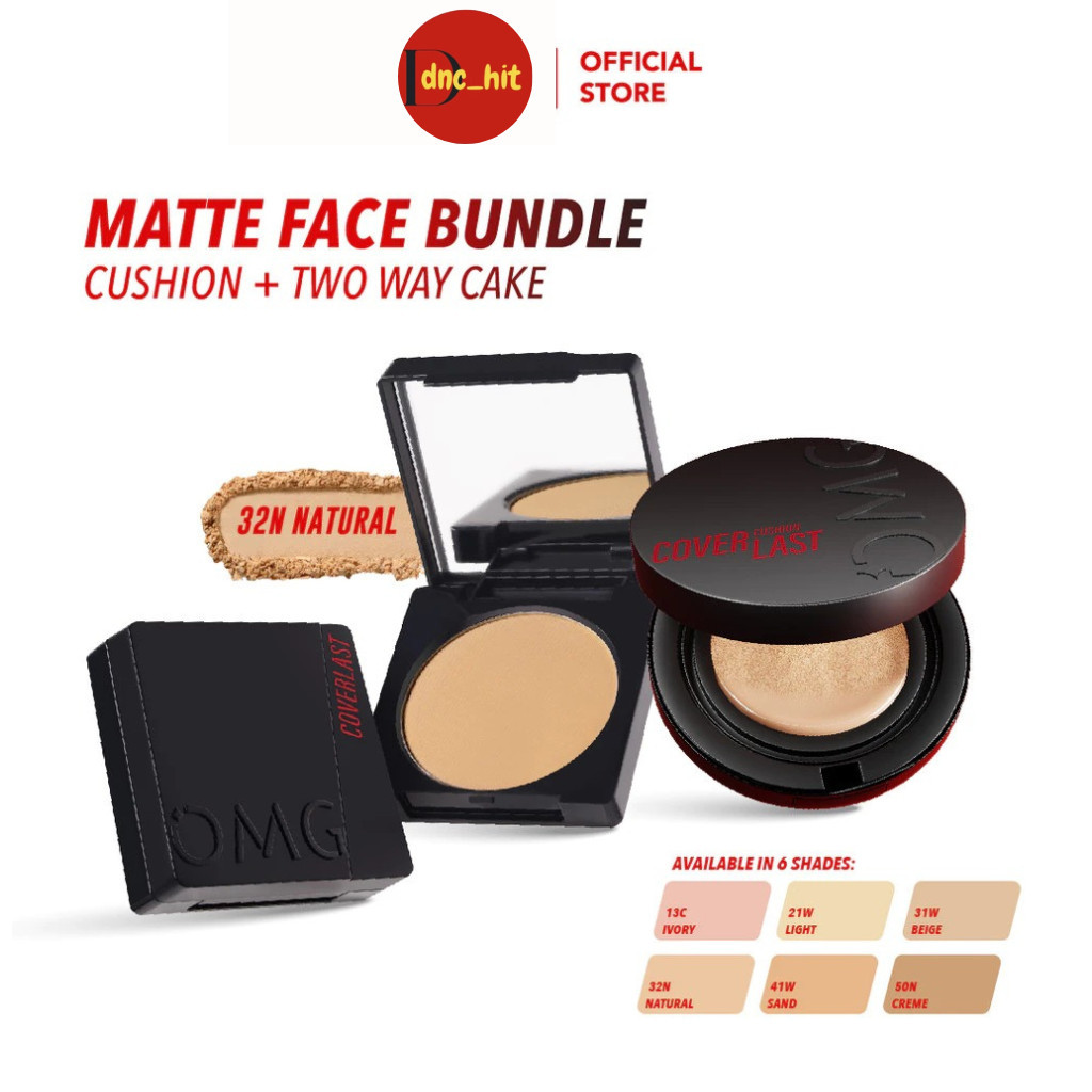 [BUNDLE] OMG Cushion + two way cake - High Coverage Dewy Finish - Poreless Cushion Longlasting, Waterproof, Transferproof Cushion Foundation