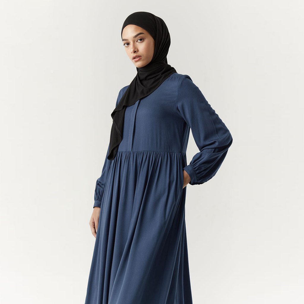 Mahreen by Aska Label - Women's rayon umroh dress with loose cutting with front buttons, nursing friendly and wudhu friendly sleeves, gamis muslimah, ironless dress