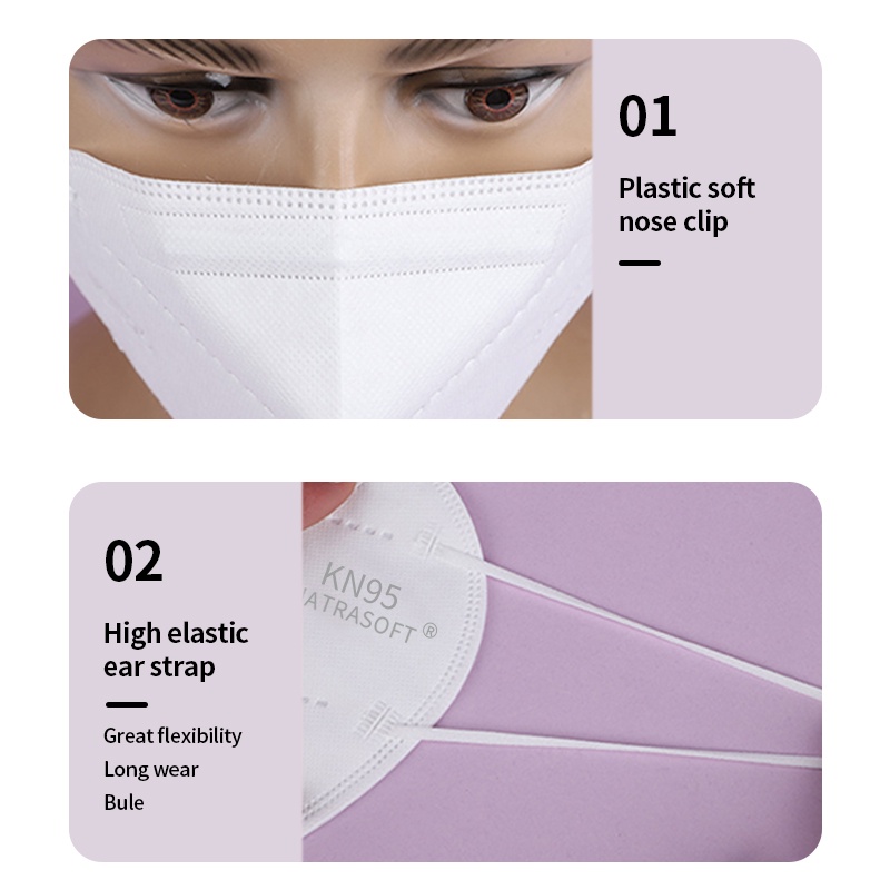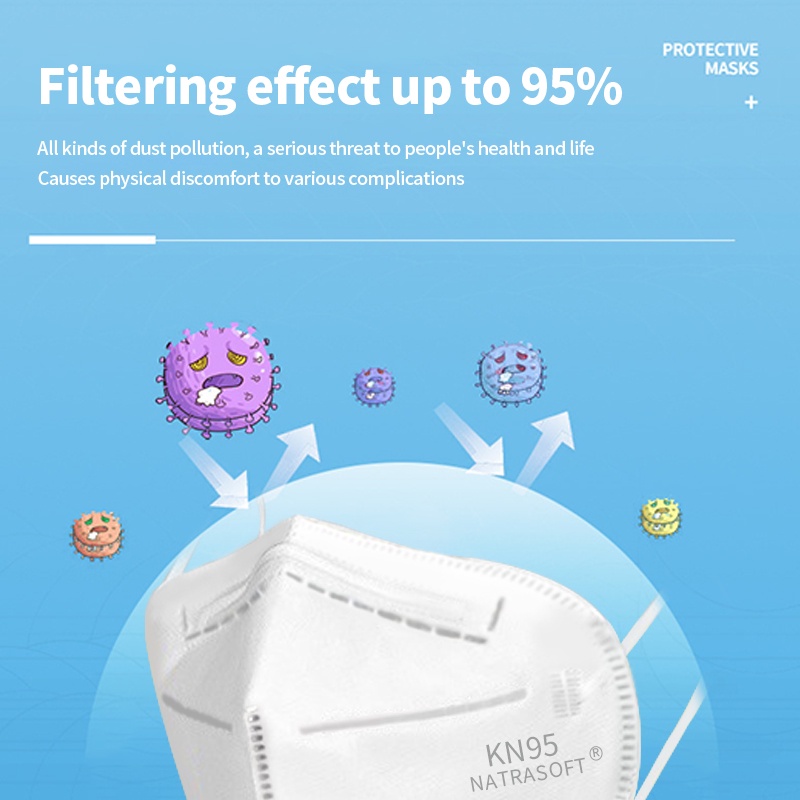 Natrasoft 40Pcs | KN95 Face Mask | 95 PFE | Individually Packed | 3D 5 Ply | CE FFP2 FDA TUV SGS