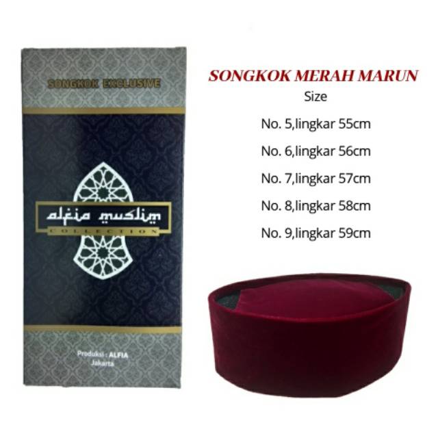 MERAH Maroon Velvet Songkok Kopiah Peci, Smooth and Soft