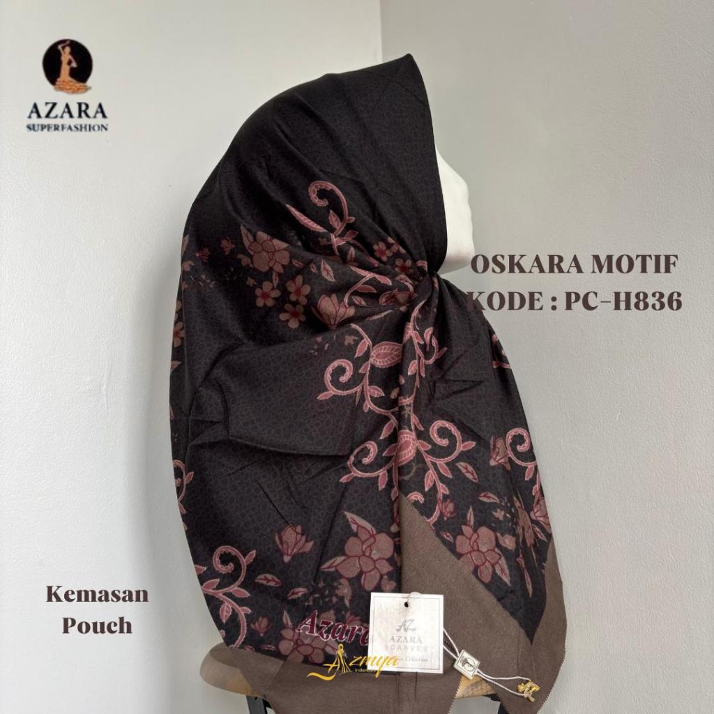Oskara Azara Motif Part 3 - Black Series Square Hijab 110x110cm Voal Miracle Lasercut Pouch Packaging