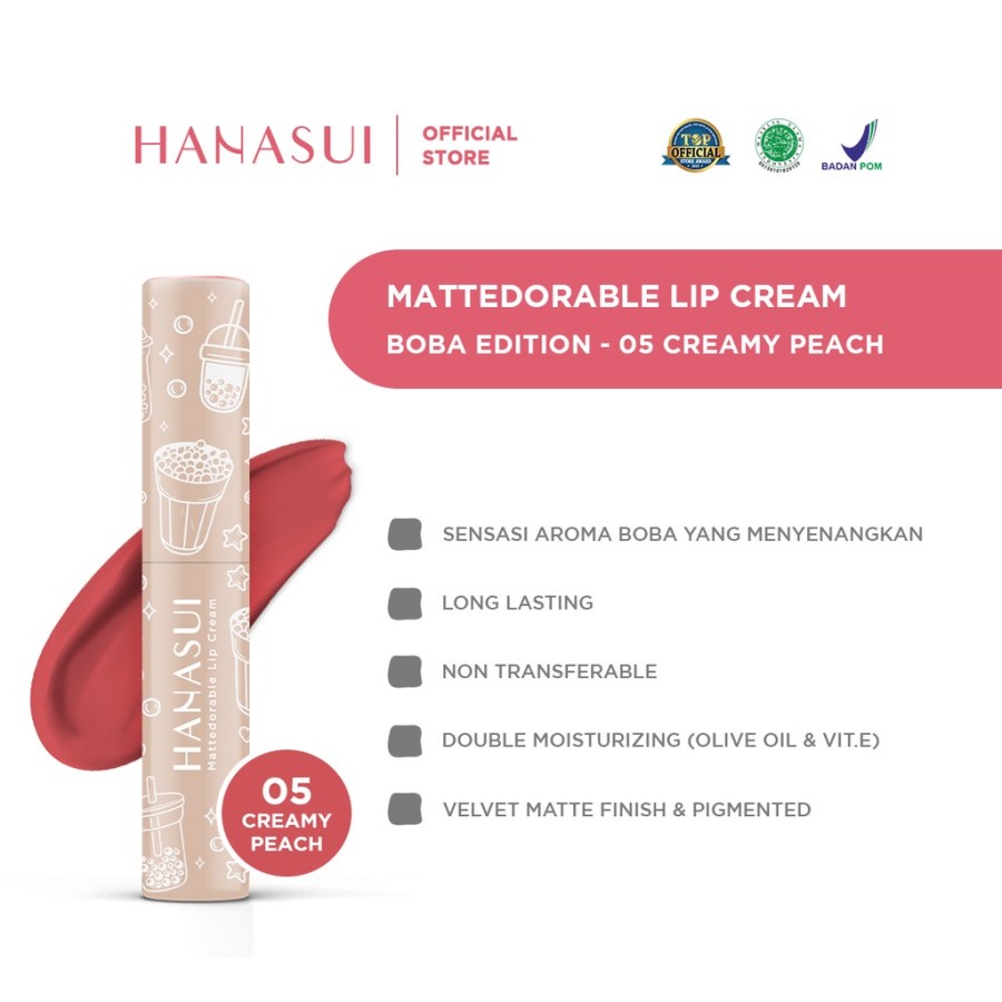 Hanasui Mattedorable Lip Cream Boba Edition | Hanasui Boba Lipcream - 5 Creamy Peach