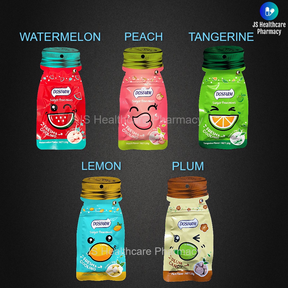 Dosfarm Sugar Free Mints Candy (Watermelon / Peach / Tangerine / Lemon / Plum) - 16g Sugar Free Candy