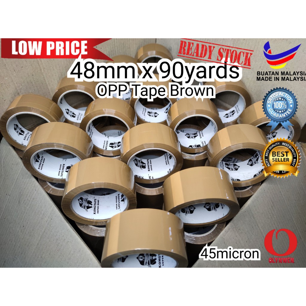 OPP Tape Fragile tape 48MM X 90Yards X 45Micron transparent brown packaging clear adhesive tape office gum lekat opp tape packaging tape