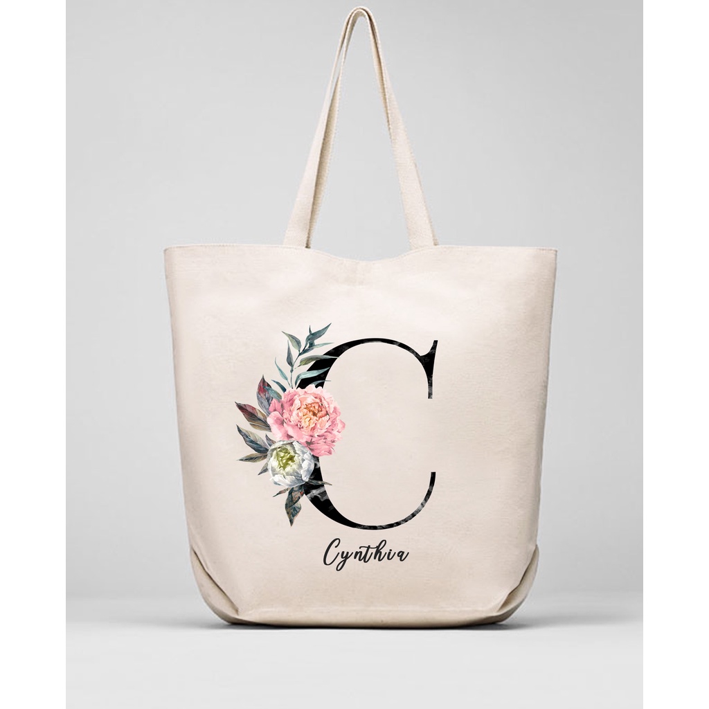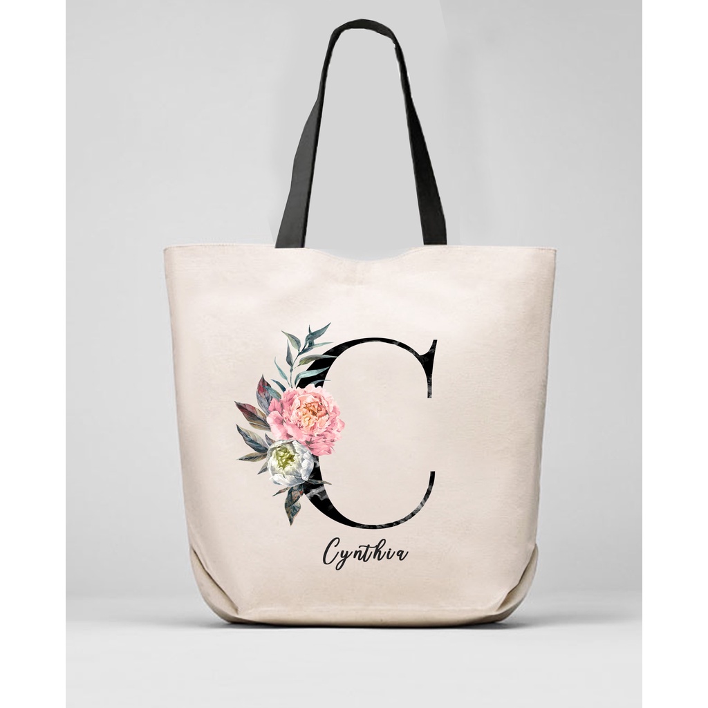 Fashion Canvas Bag-Free Name-Shoulder Bag -Personalised Canvas Bag-personalised gift-Hadiah Birthday Wanita-Students Bag