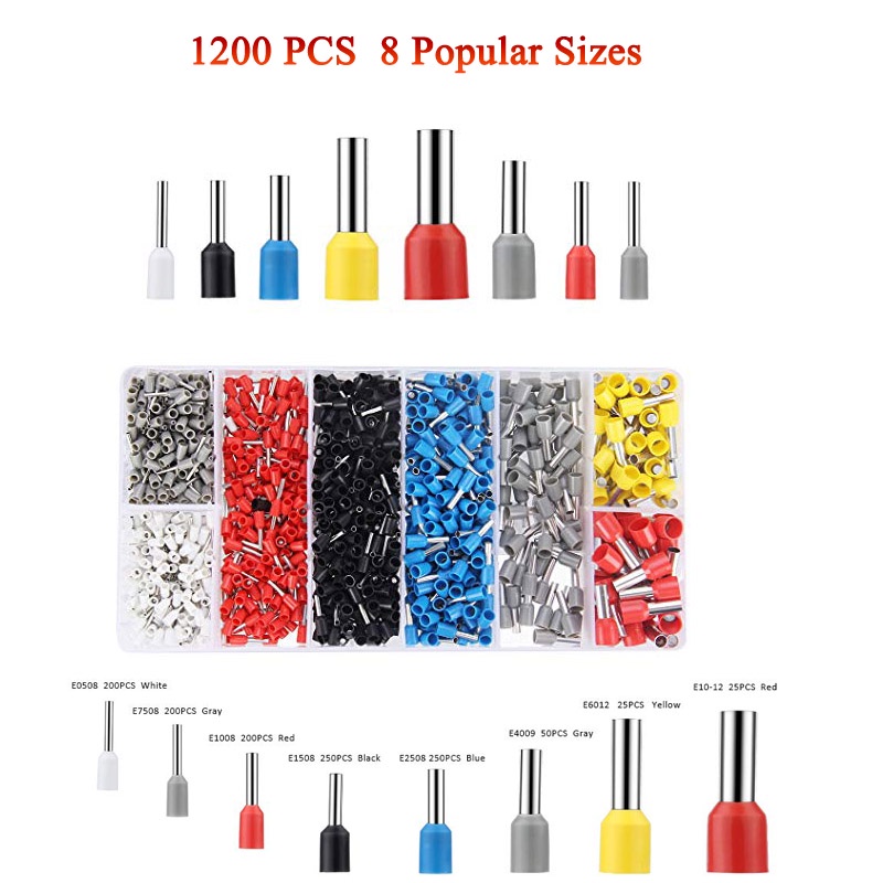 1200PCS Wire Ferrules, Insulated Crimp Pin Terminal Kit for Electrical Projects, AWG 24-7, 8 Sizes,Ferrule Crimping Kit Wire Connector Electrical