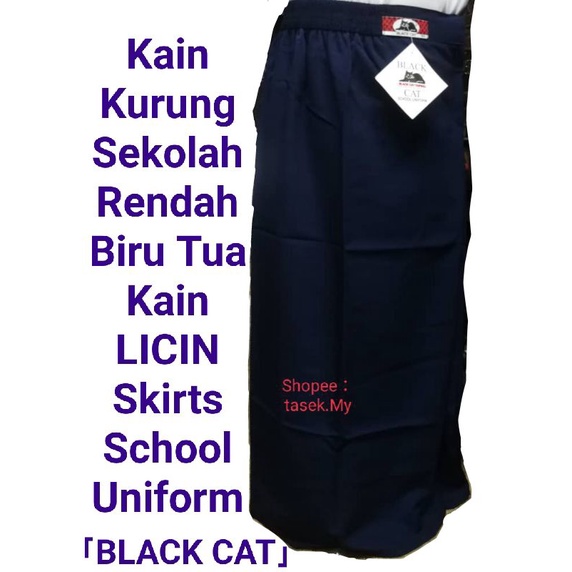 Kain Kurung Rendah「BLACK CAT」Kain Kurung Sekolah Rendah Biru Tua Kain LICIN Skirts School Uniform