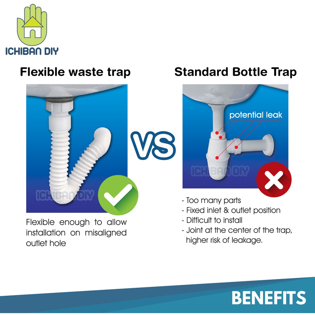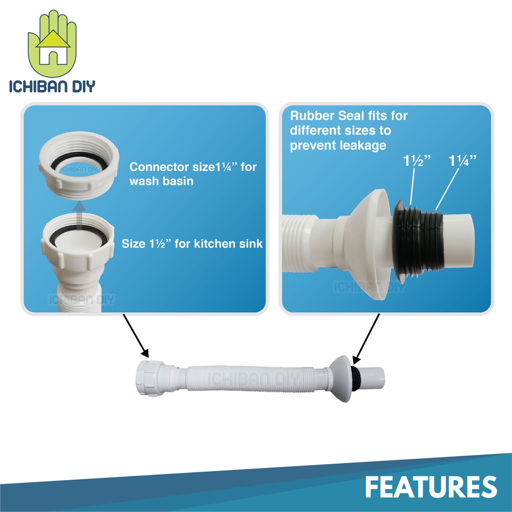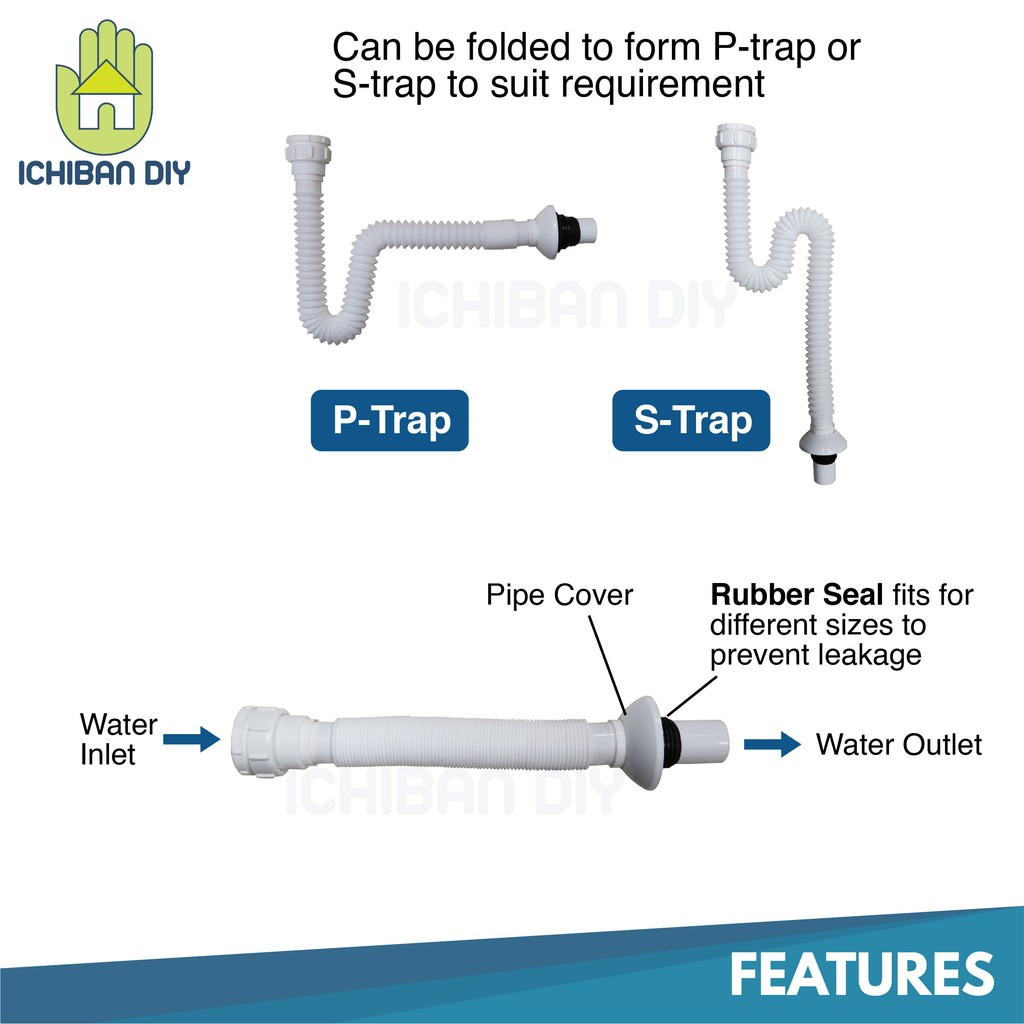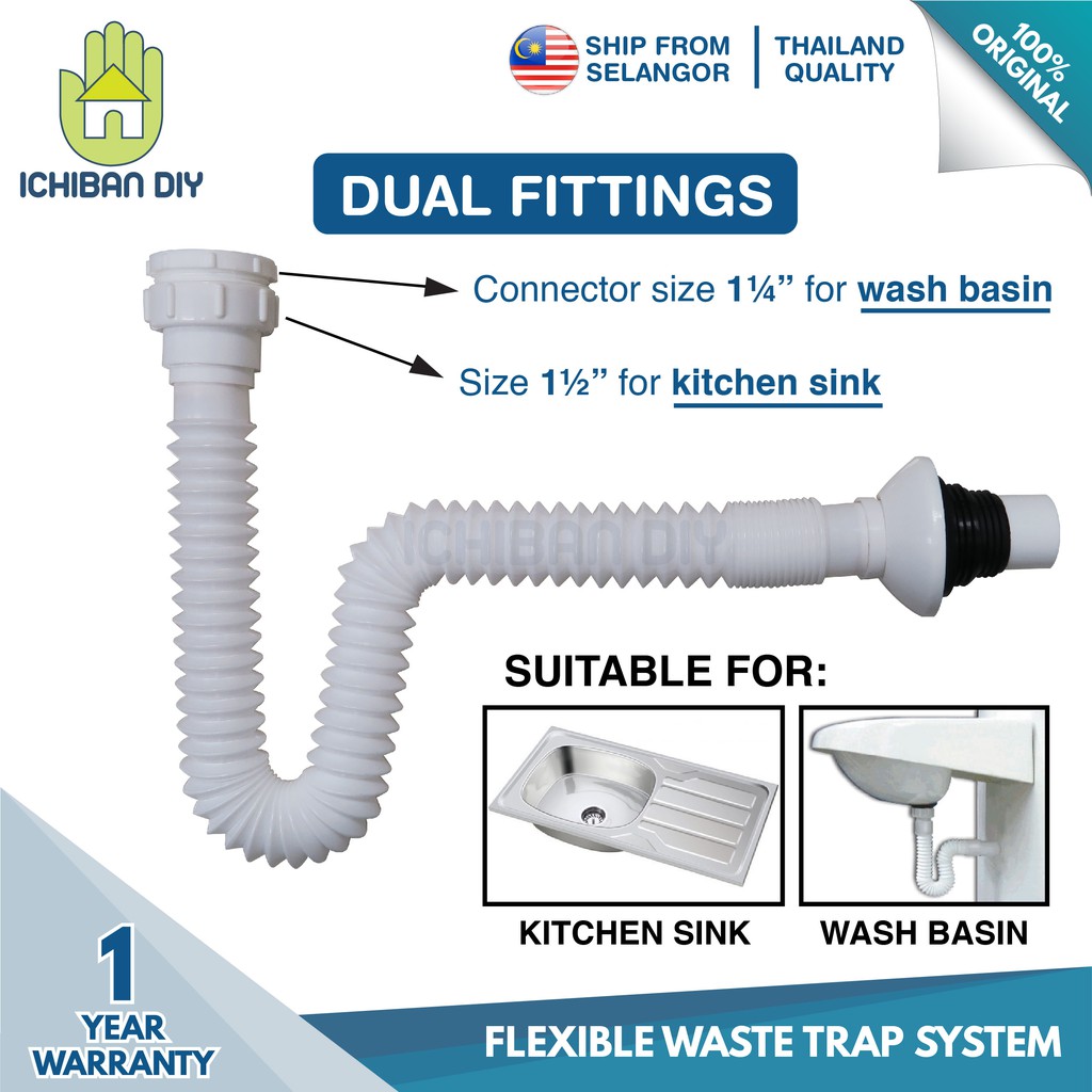 Flexible Waste Trap Dual Fitting Kitchen Sink Wash Basin Bottle Hos Fleksibel Sisa Singki Dapur Bilik Air [ichiban DIY]