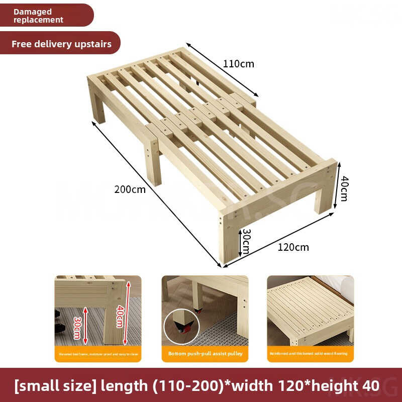 SG Solid Wood Sofa Bed Extendable Bed Pull-out Bed Small Apartment Living Room Tatami Simple Push-pull Folding Splicing Bed