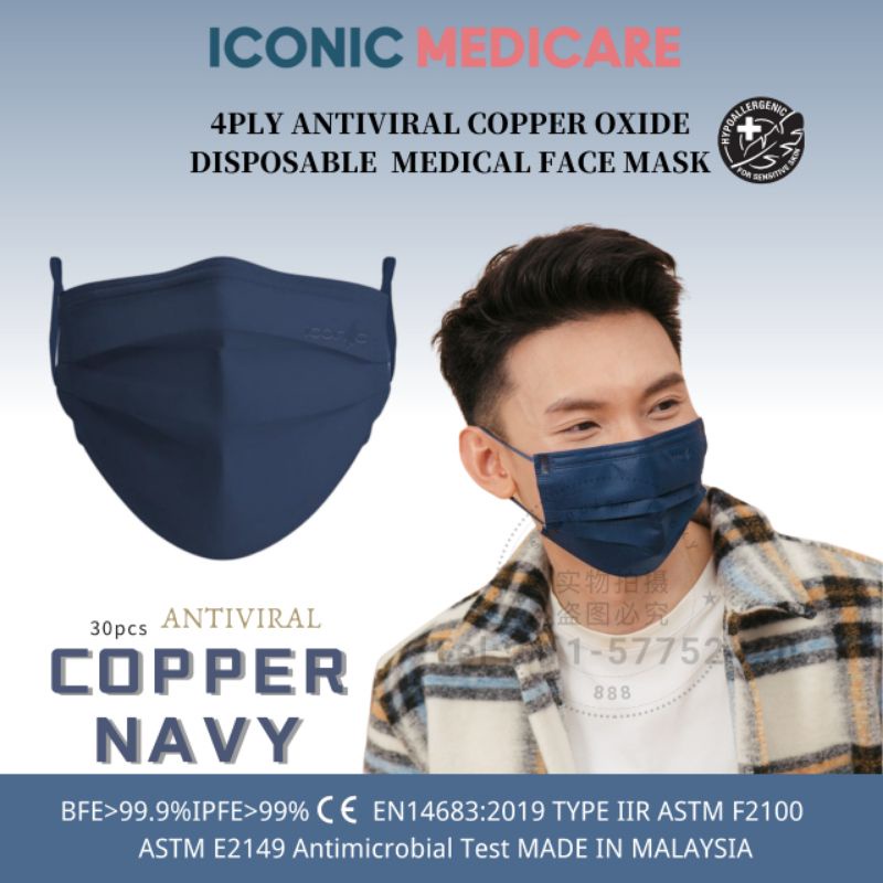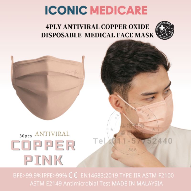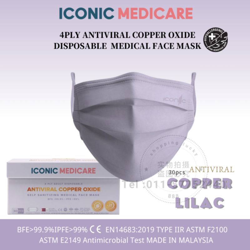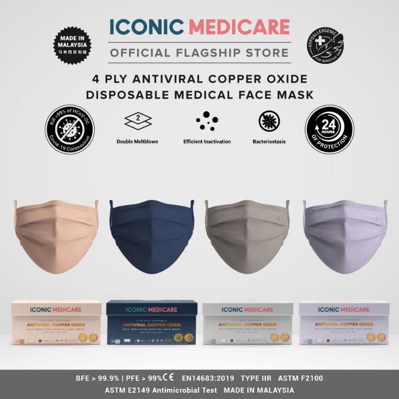 Iconic 4 Ply Antiviral Copper Medical Face Mask - Plain 30 pcs