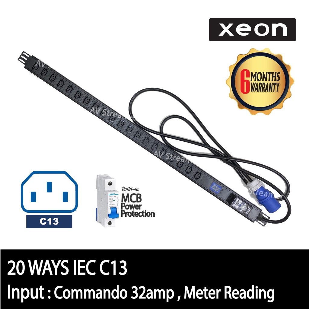 PDU Power Distribution Unit 20 ways IEC C13 (32amp, meter reading)
