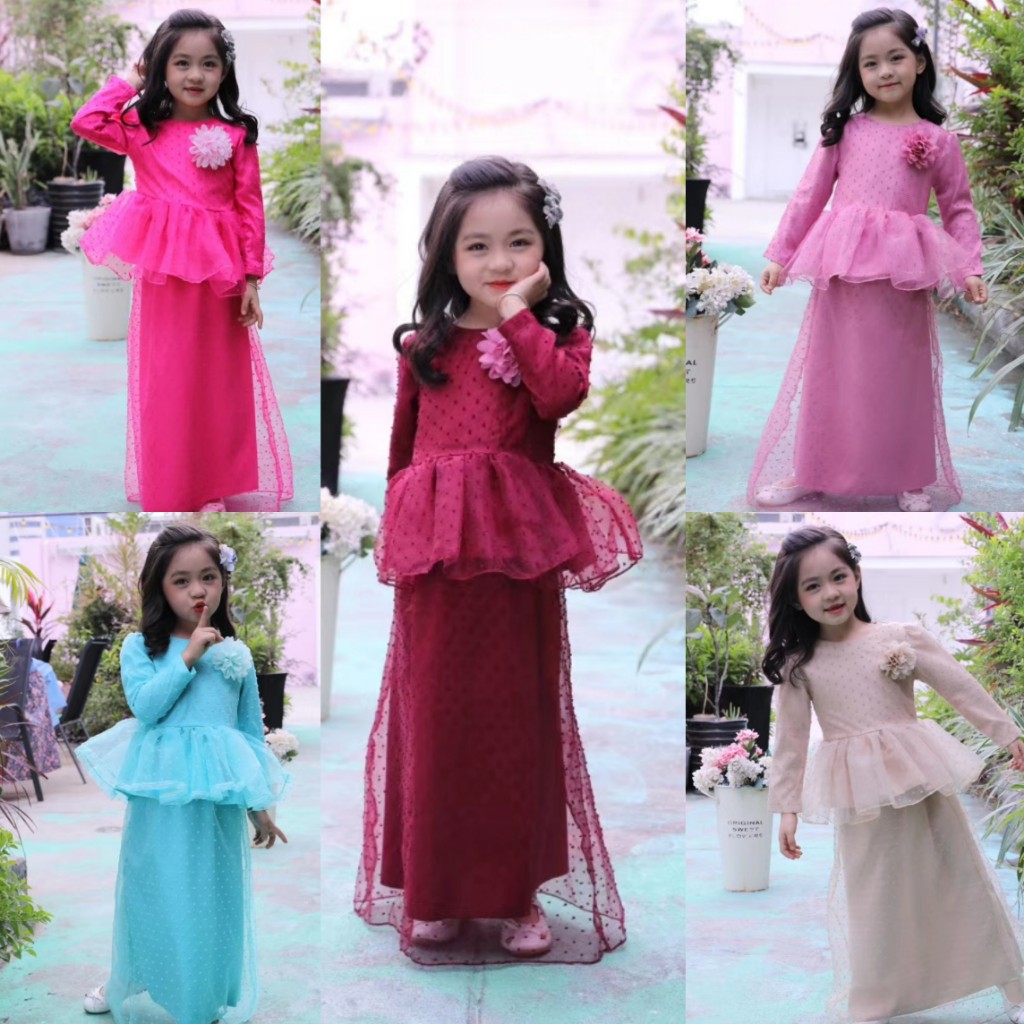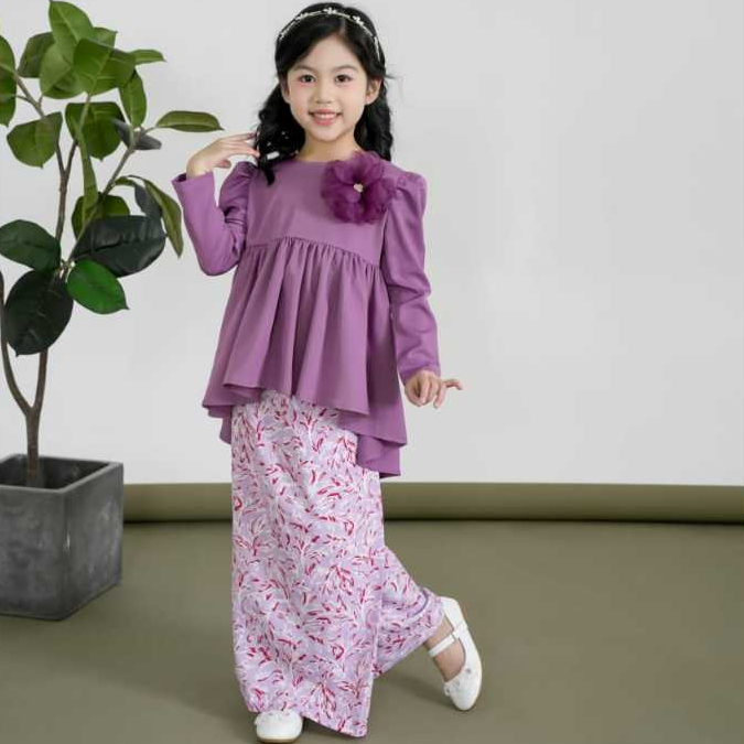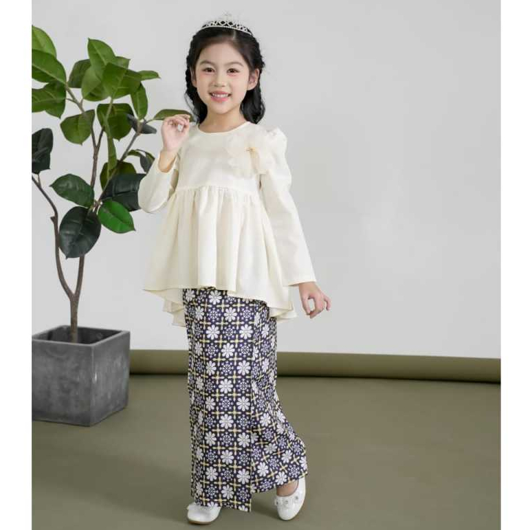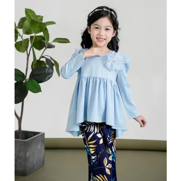 Raya Budak 2026 Modern Baju Kurung Peplum Batik Baby Blue