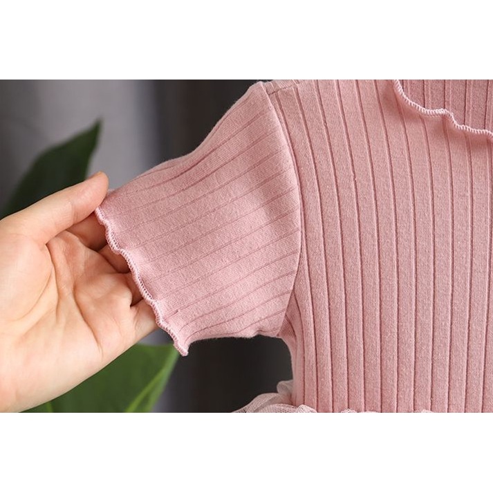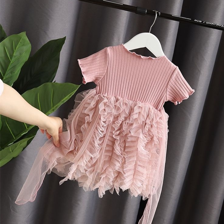 Summer Baju Baby Girls Dress Pink Princess Short Sleeve Kids Clothing Dress QY117