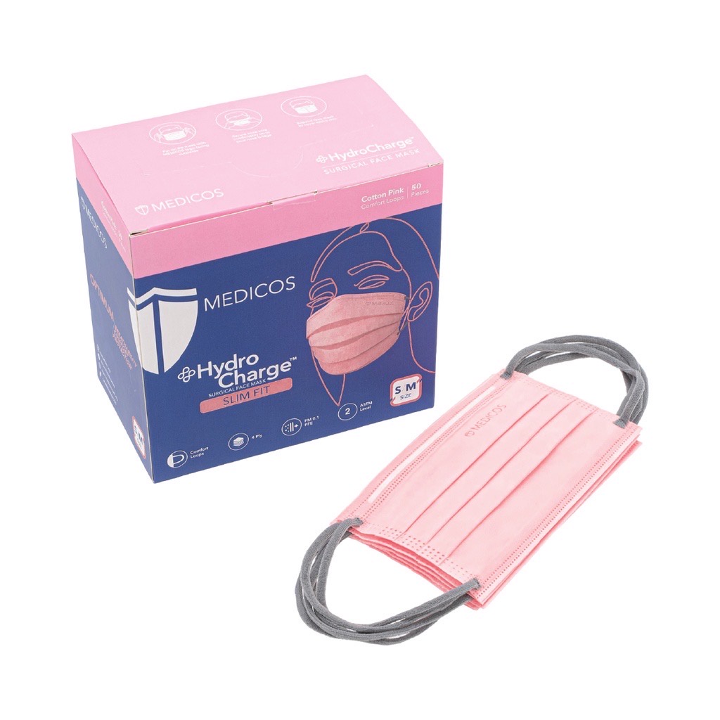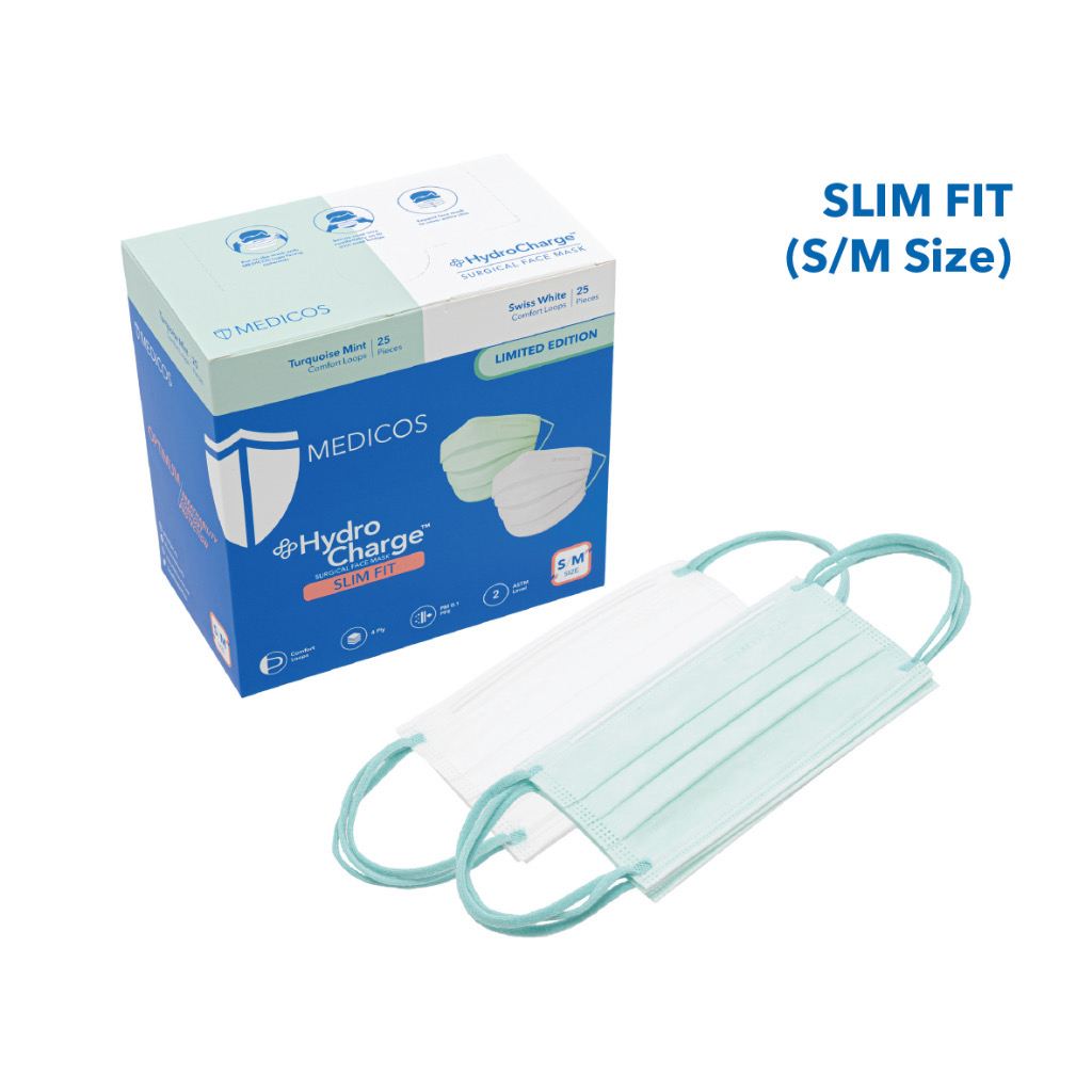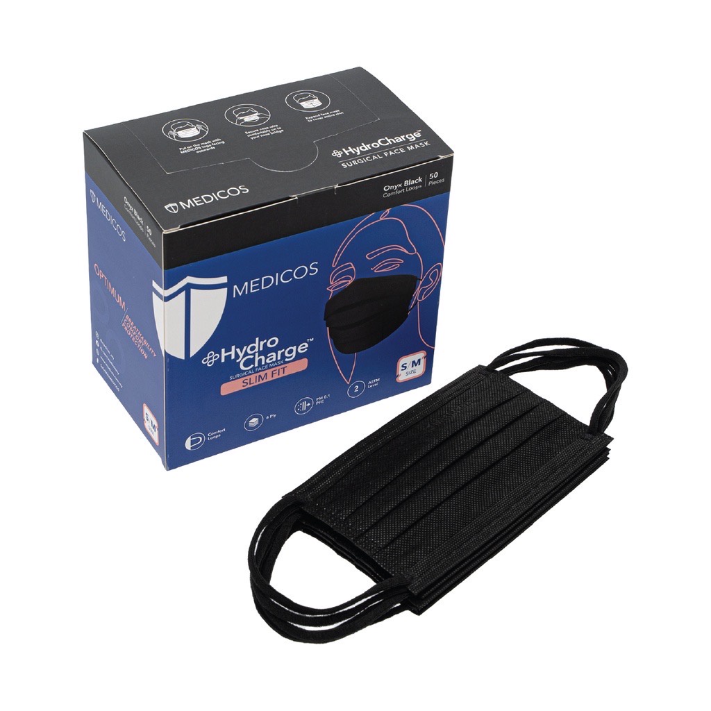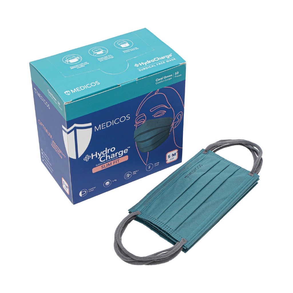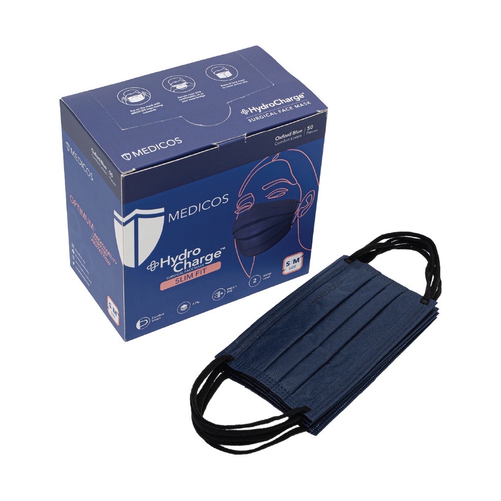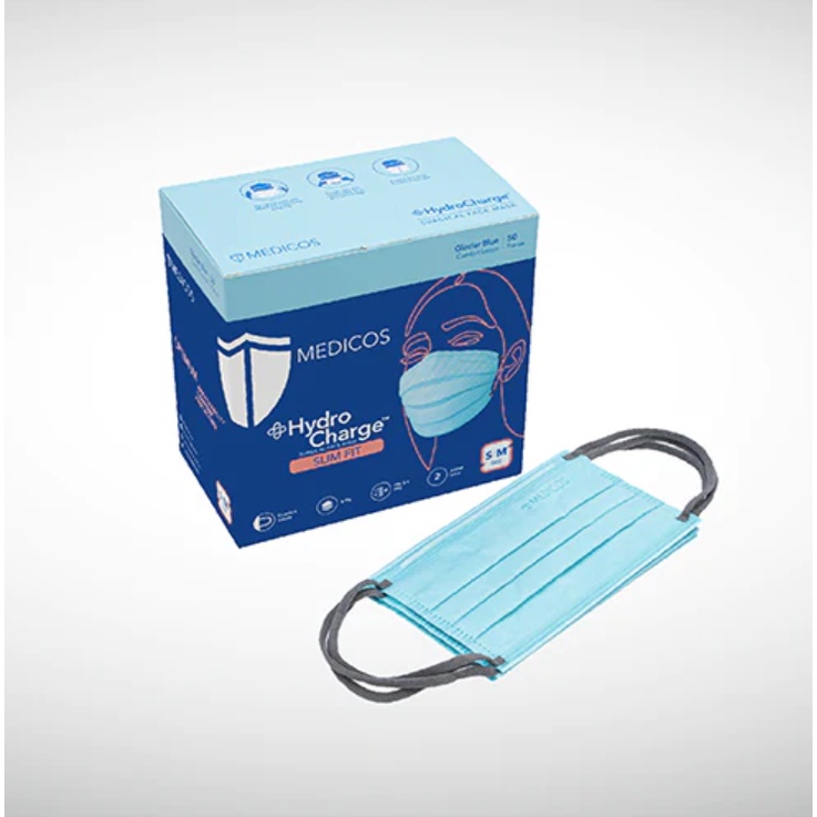 MEDICOS (NEW) Slim Fit Size 165 HydroCharge 4ply Surgical Face Mask Surgical Mask Assorted Color 50’s