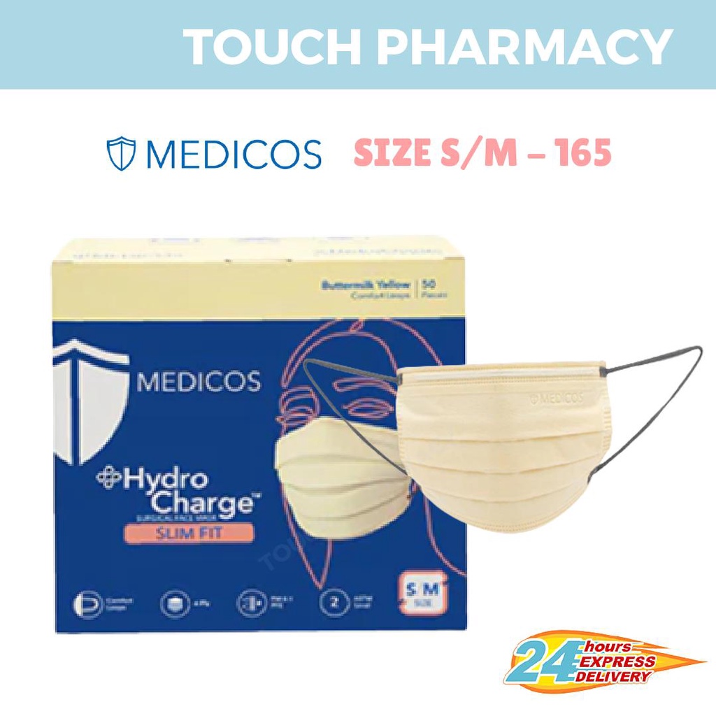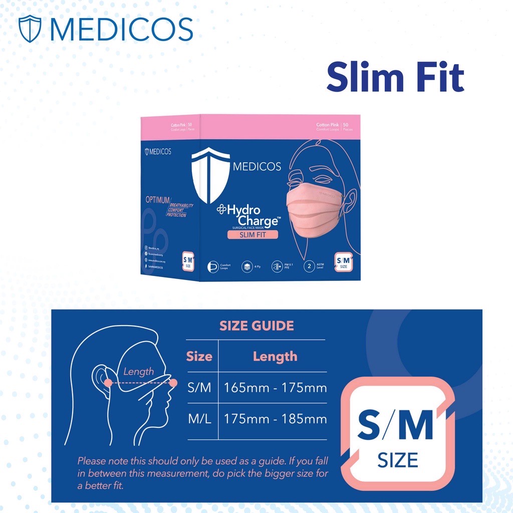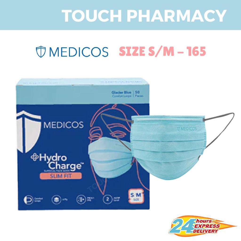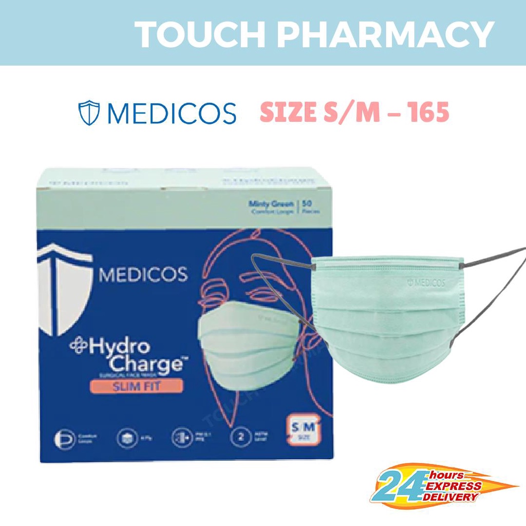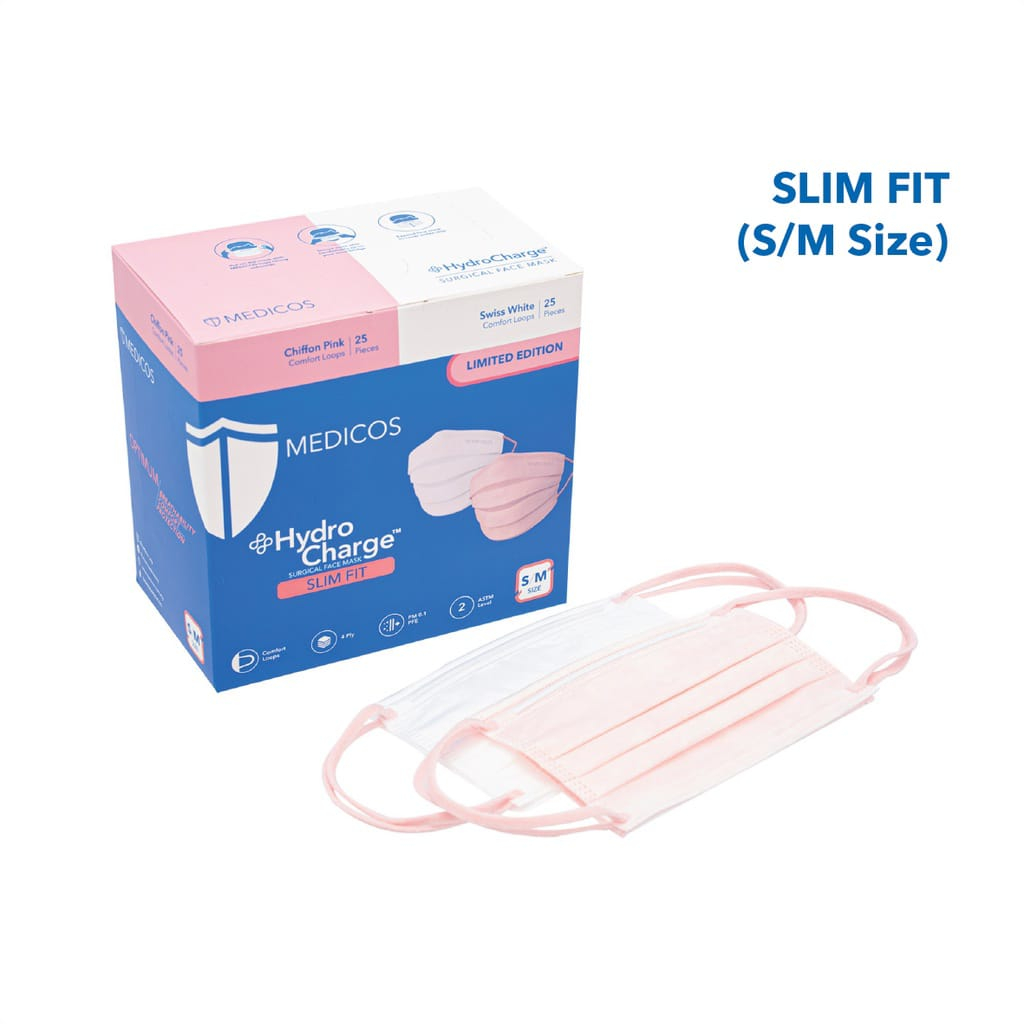 MEDICOS (NEW) Slim Fit Size 165 HydroCharge 4ply Surgical Face Mask Surgical Mask Assorted Color 50’s