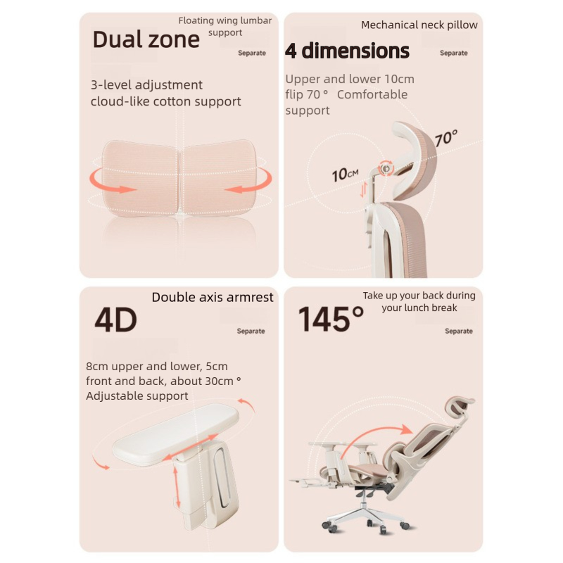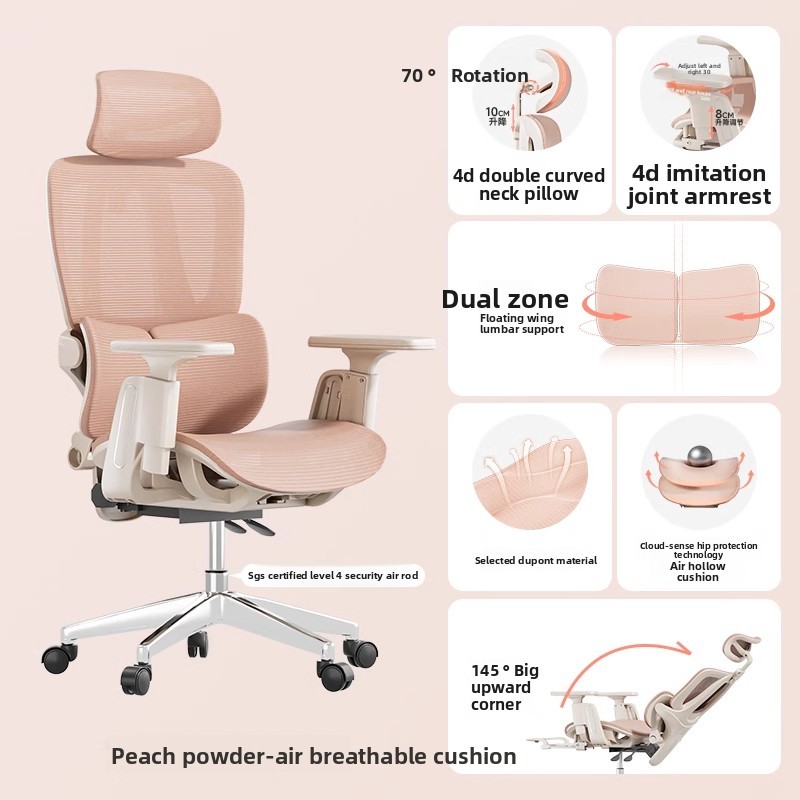 Desiny Ergonomic Chair Office Gaming Chair Girls Bedroom Sedentary Comfort Pink Computer Chair