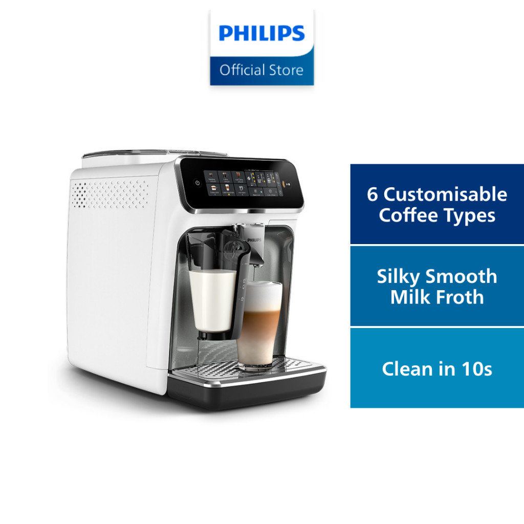 (NEW) PHILIPS LatteGo Series 3300 Fully Automatic Espresso Machine – EP3343/31, 6 coffee settings, iced coffee, touch di