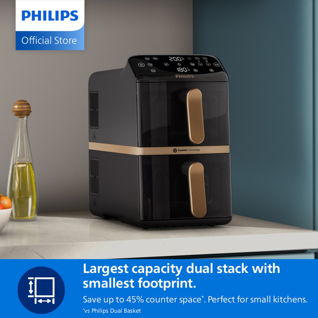 [NEW] Philips Dual Stack Airfryer 4000s NA462/79 | Vertical RapidAir | Cooking Windows | 5+5L