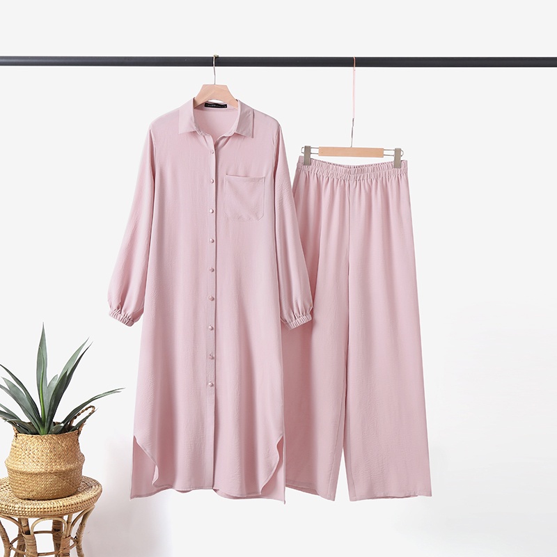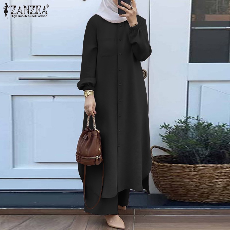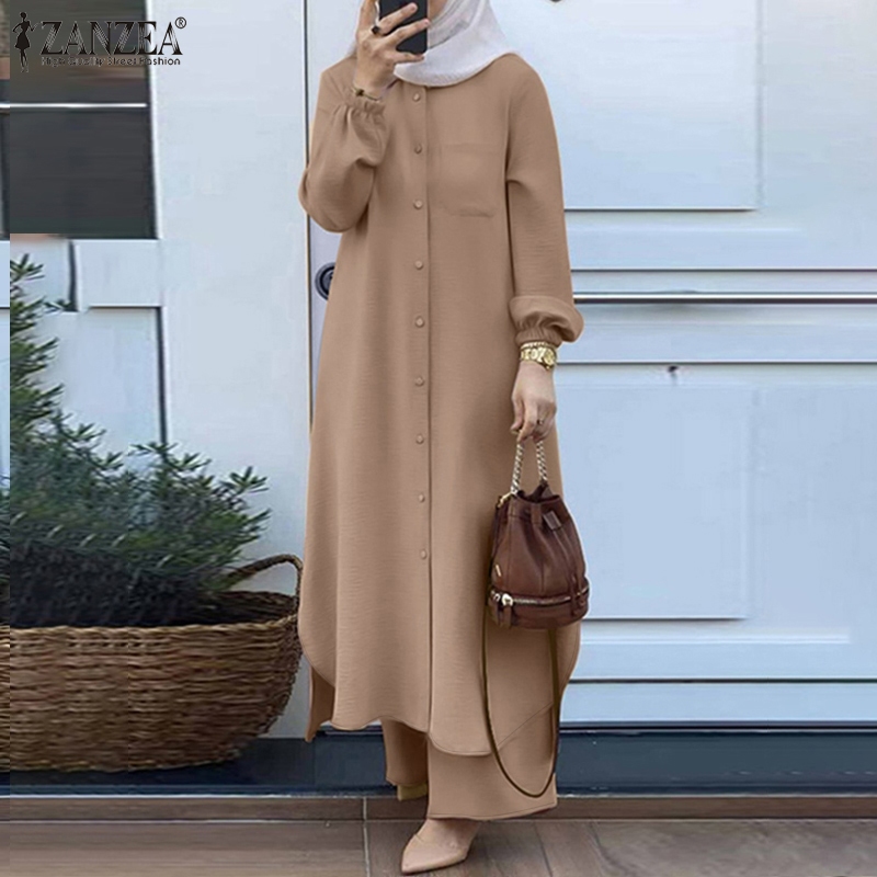 ZANZEA Women Long Sleeved Button Down Front Casual Front Pockets Muslim 2PCS Set