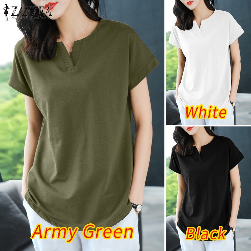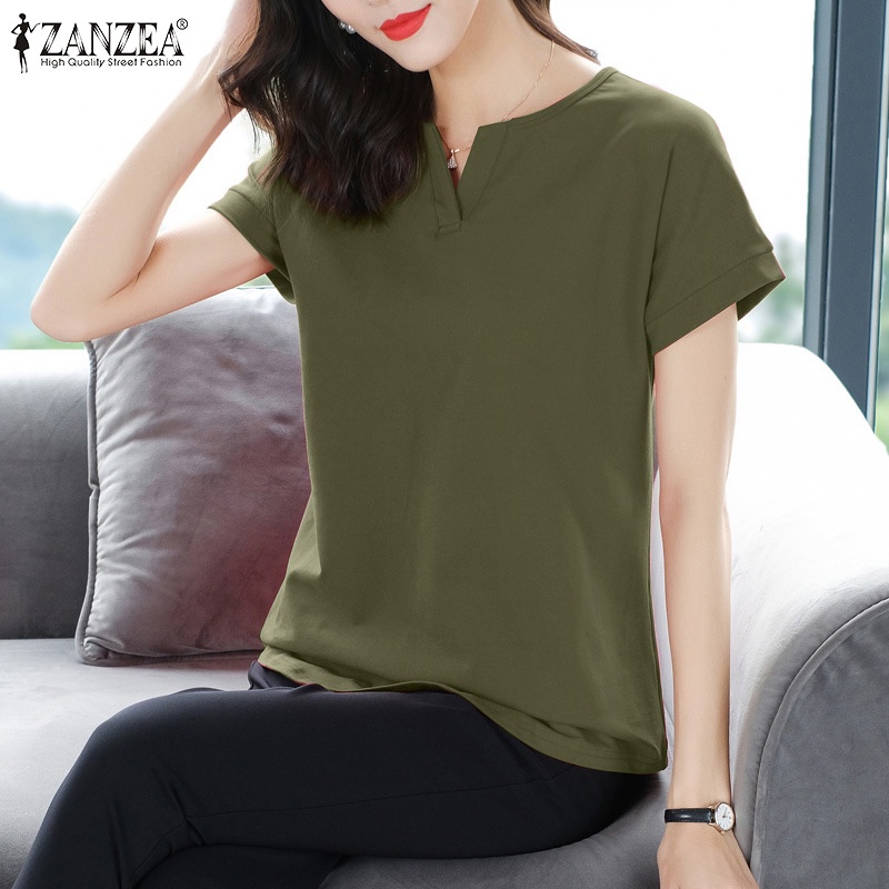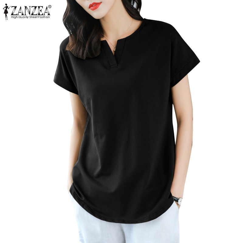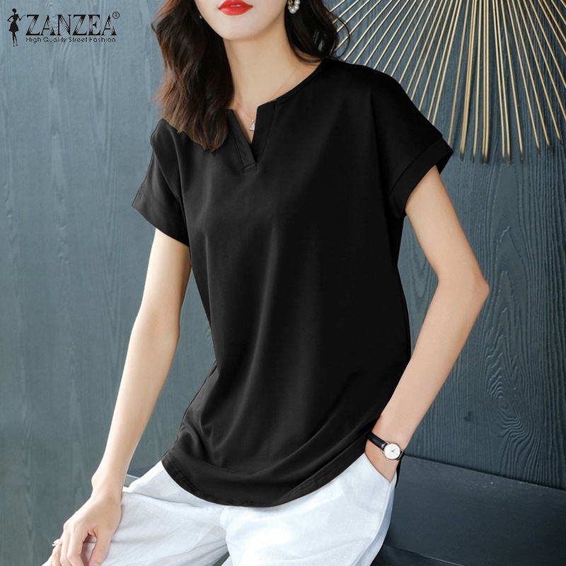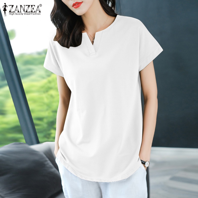 ZANZEA Women Korean Daily Simple Short Sleeve Solid Color Front Neck Split All-match T-Shirt