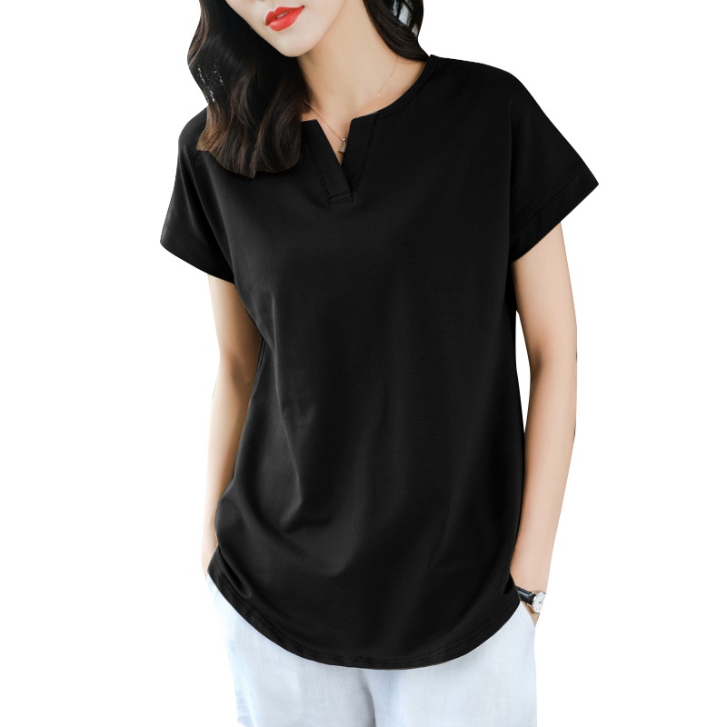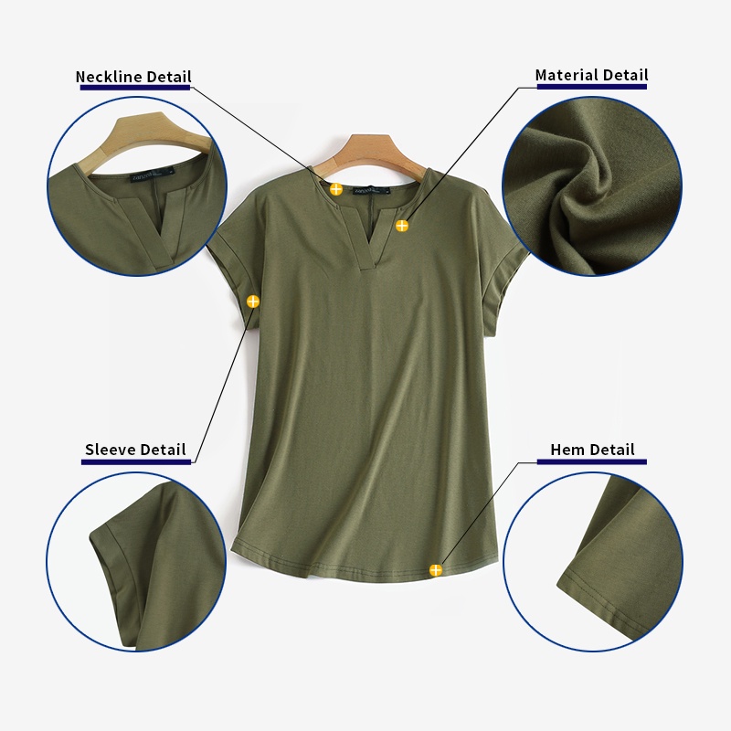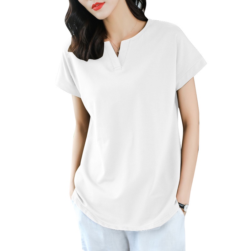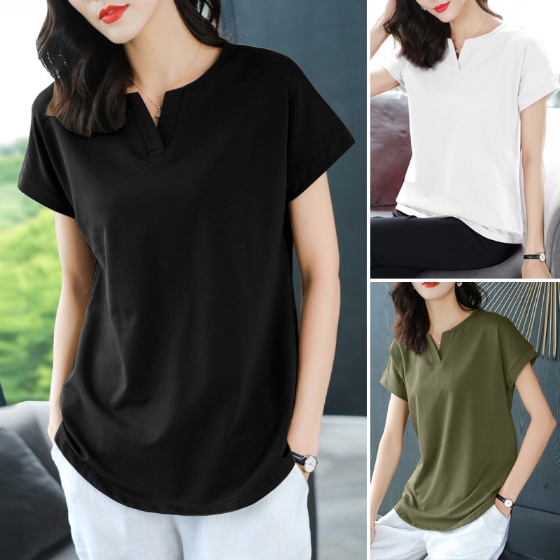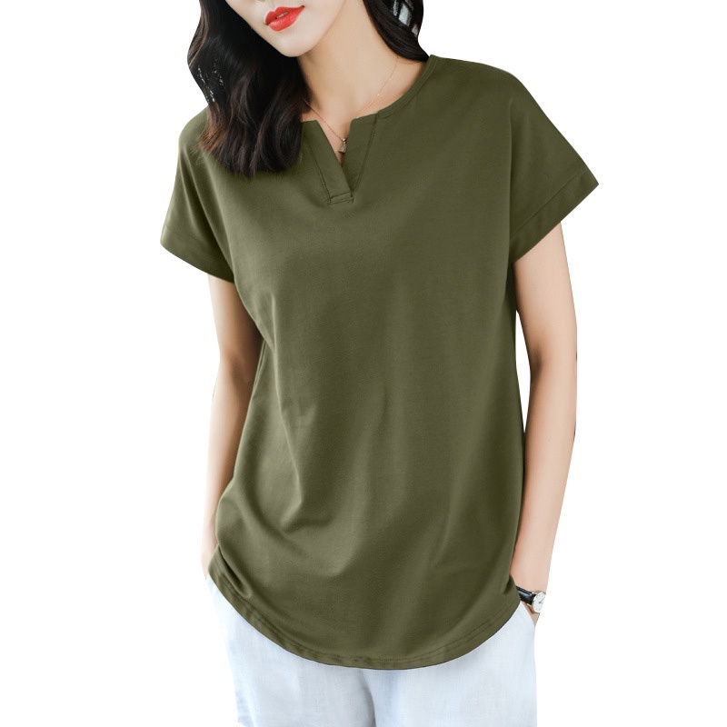 ZANZEA Women Korean Daily Simple Short Sleeve Solid Color Front Neck Split All-match T-Shirt