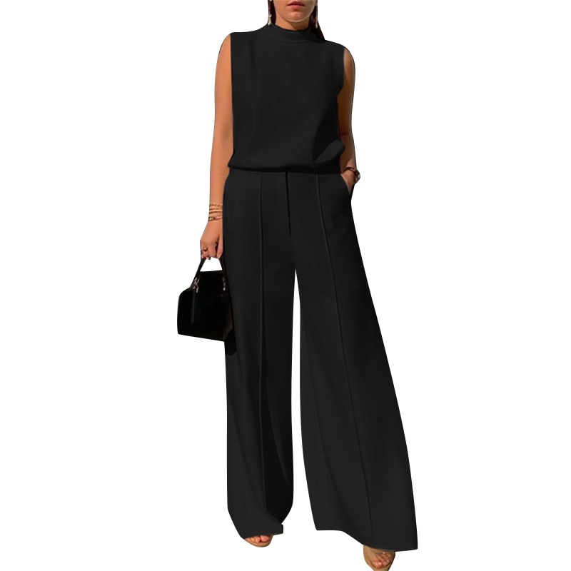 ZANZEA Women Vintage Fashion Stand-Up Neck Sleeveless Casual Sets