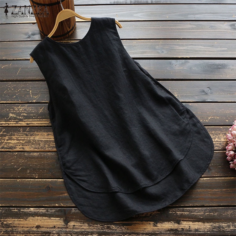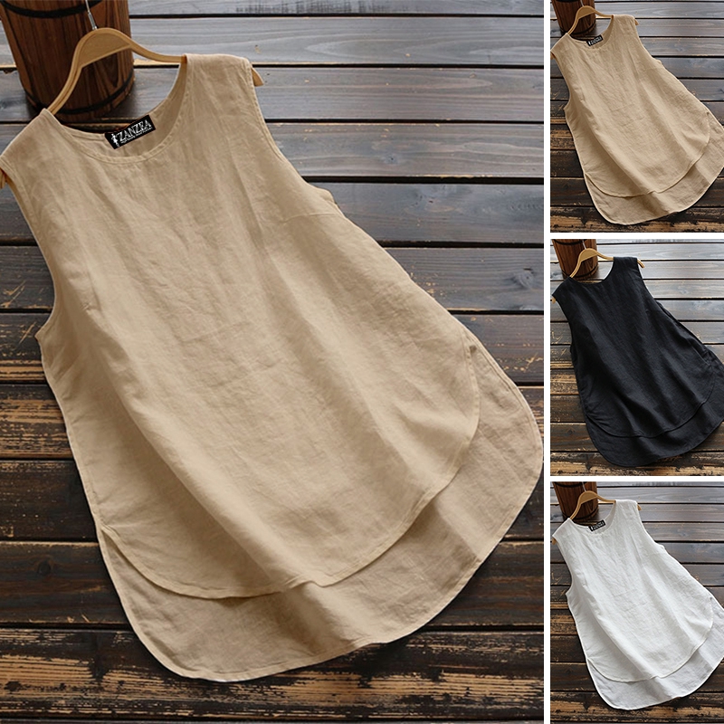 ZANZEA Women Plus Size Loose Solid Basic Sleeveless Loose Tank