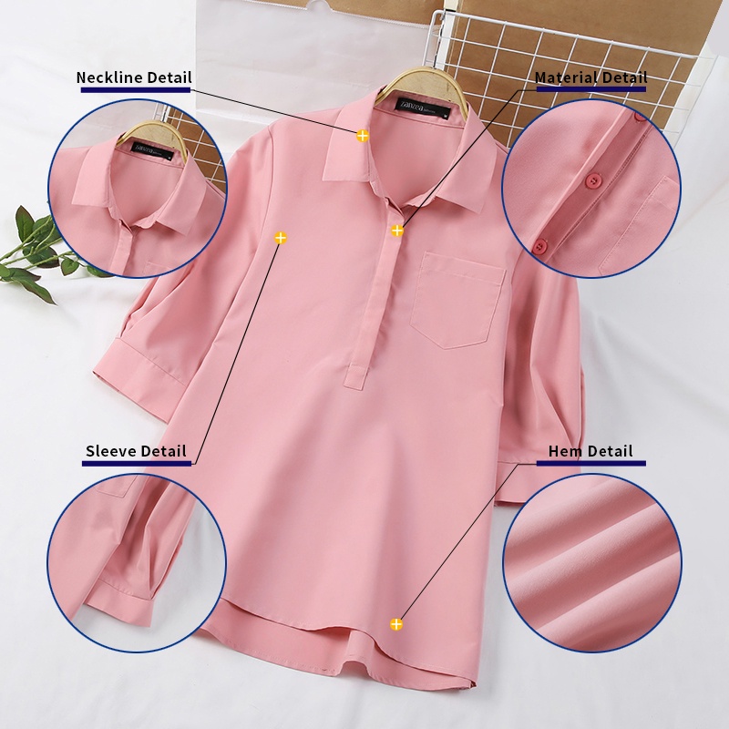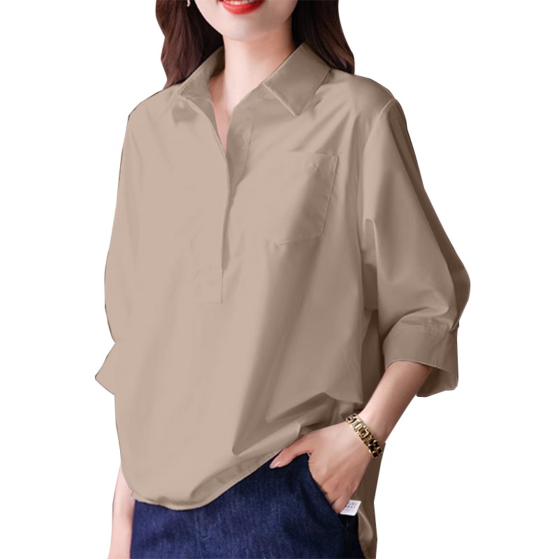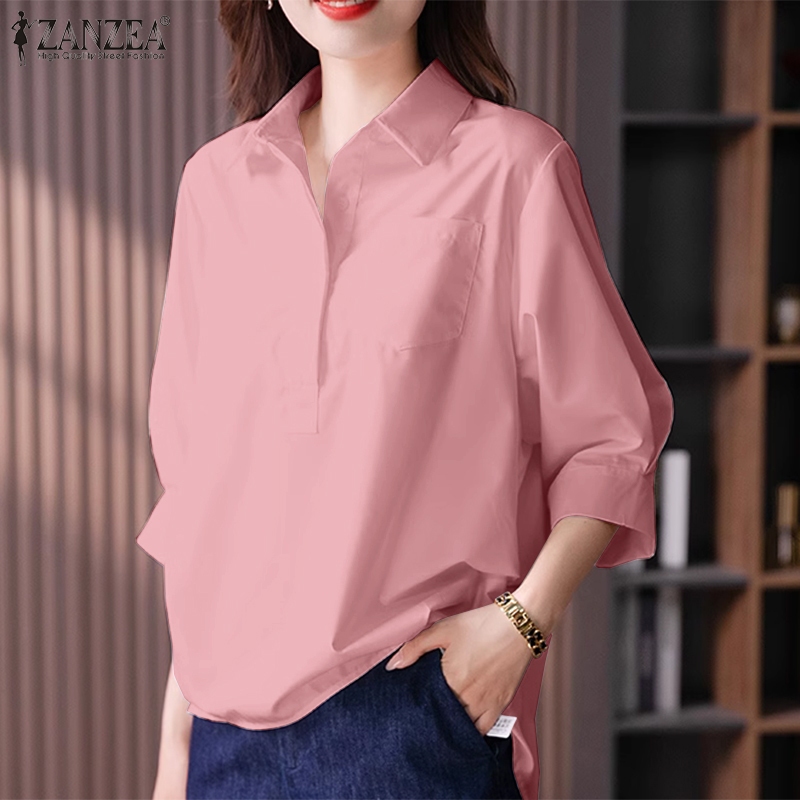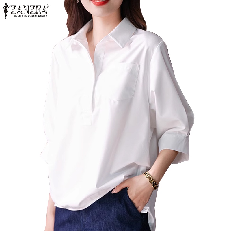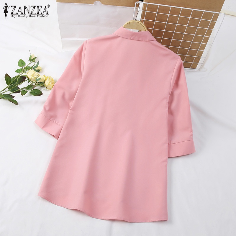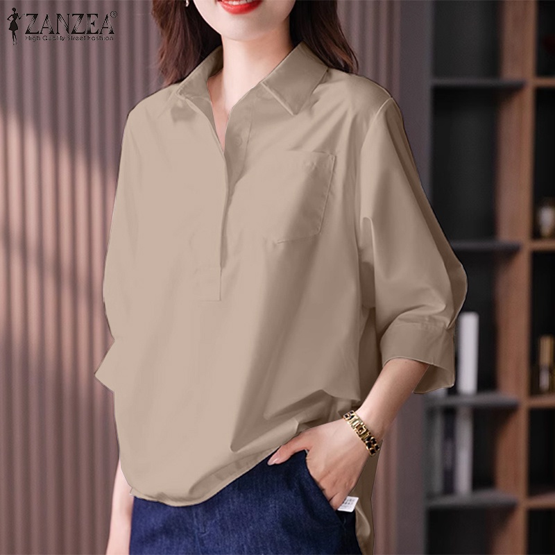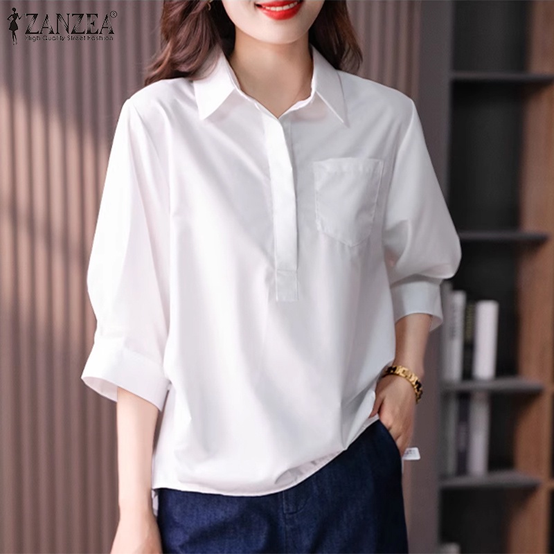 ZANZEA Women Korean Puff Sleeves Six-Quarter Sleeve Turn-Down-Collar Shirts