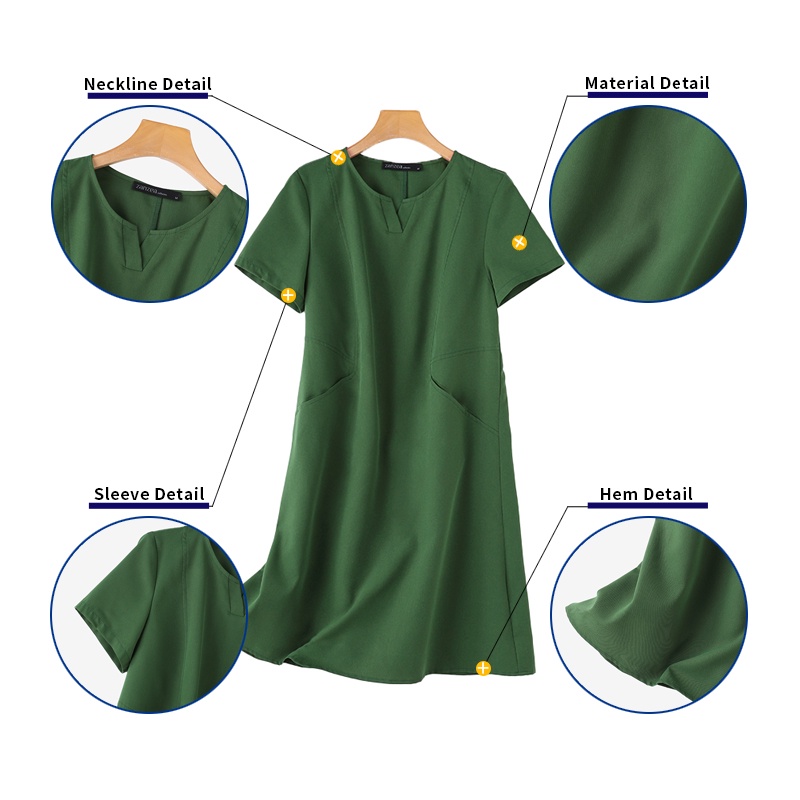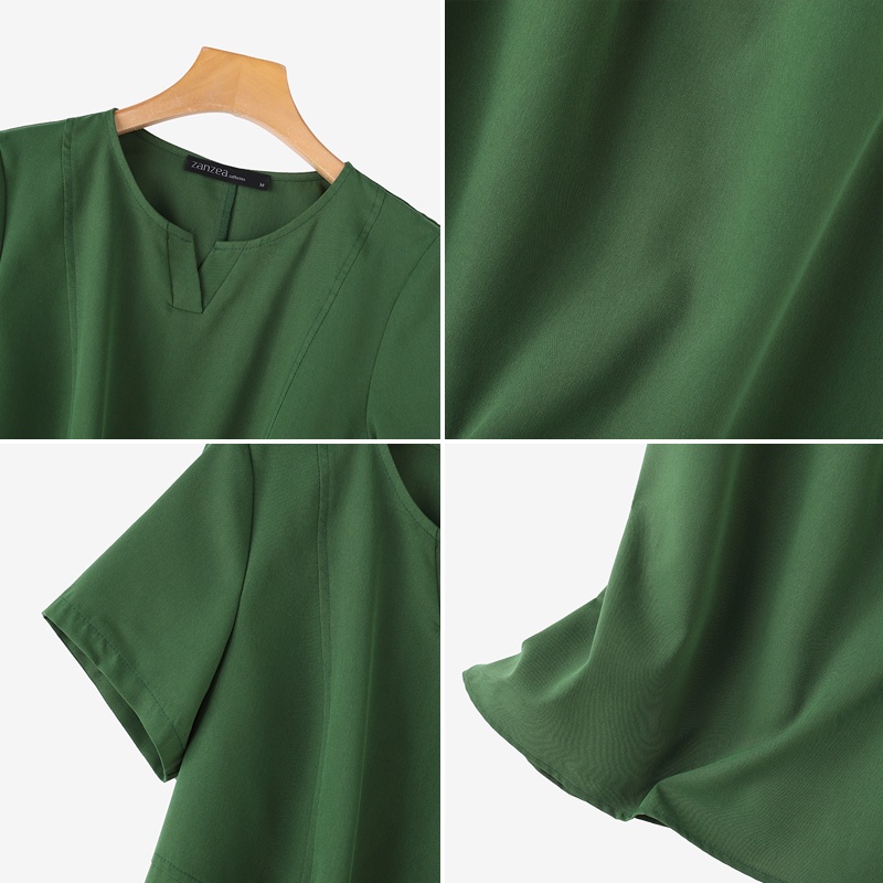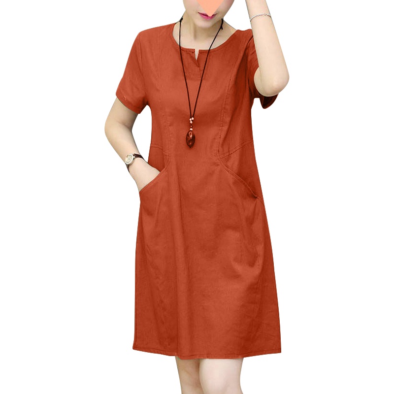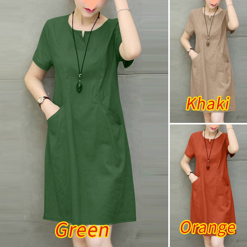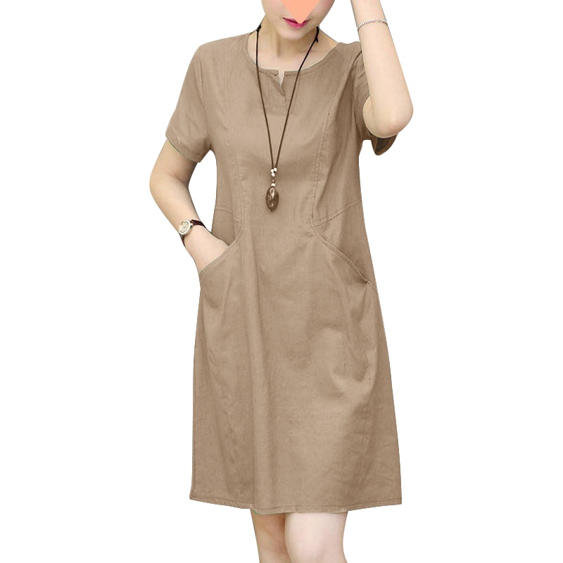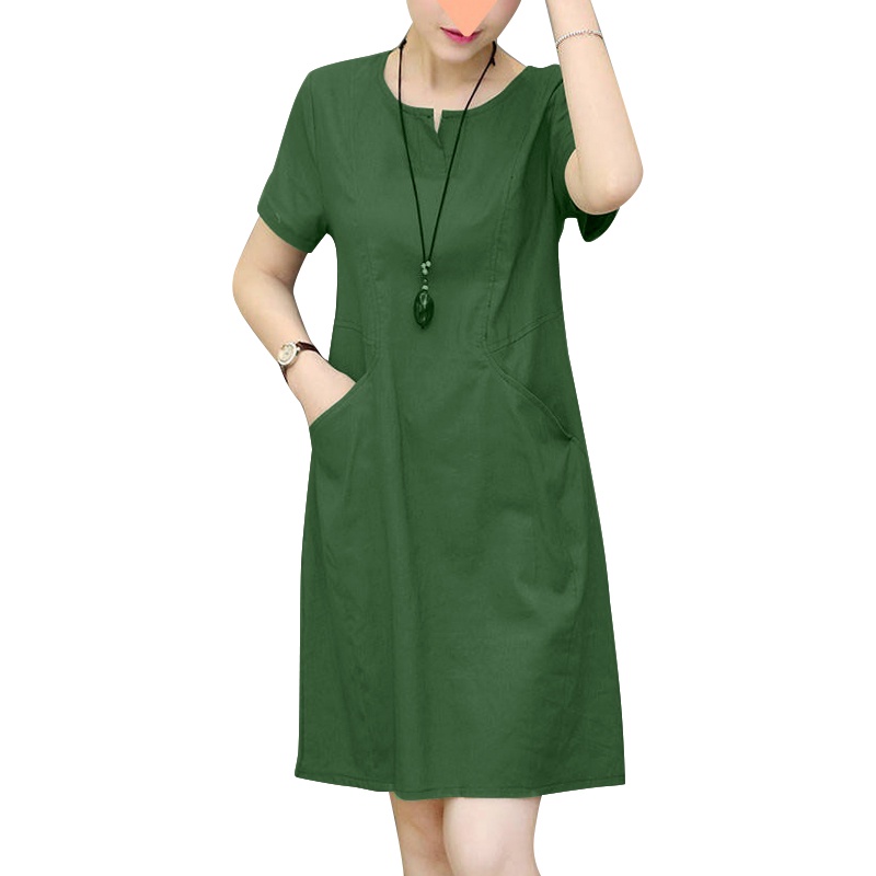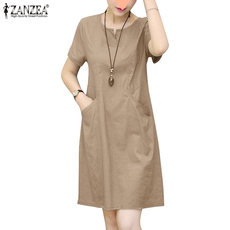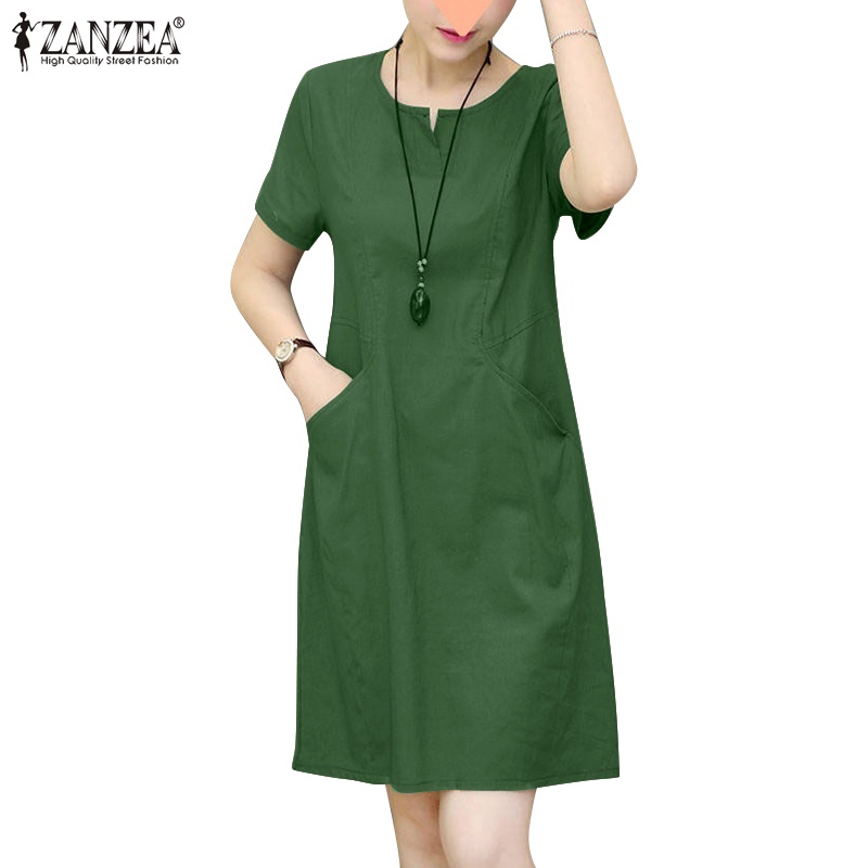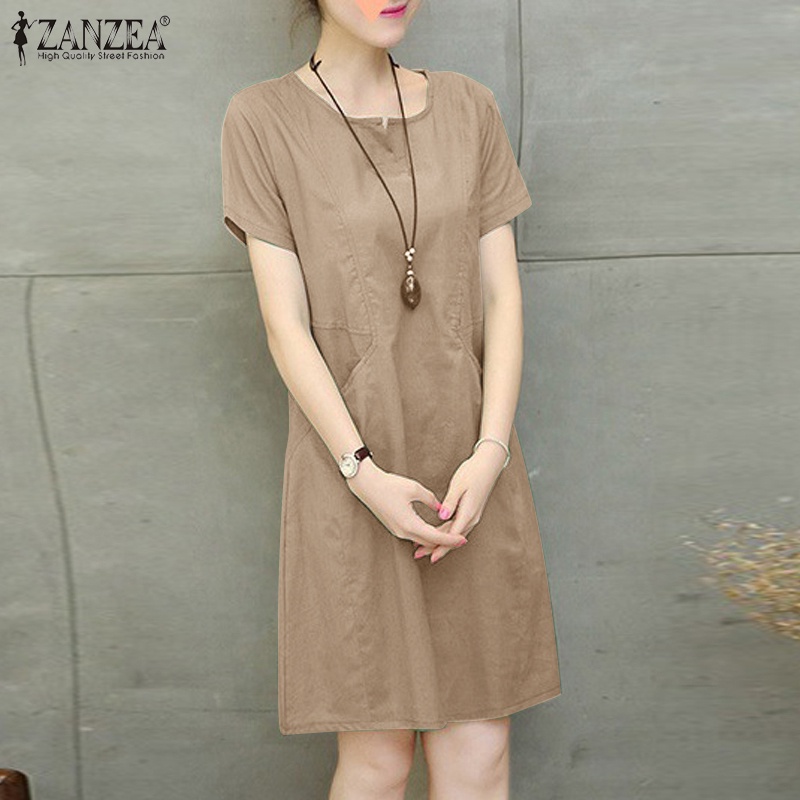 ZANZEA Women Korean Side Pockets V-Neck Short Sleeves Solid Color Dresses