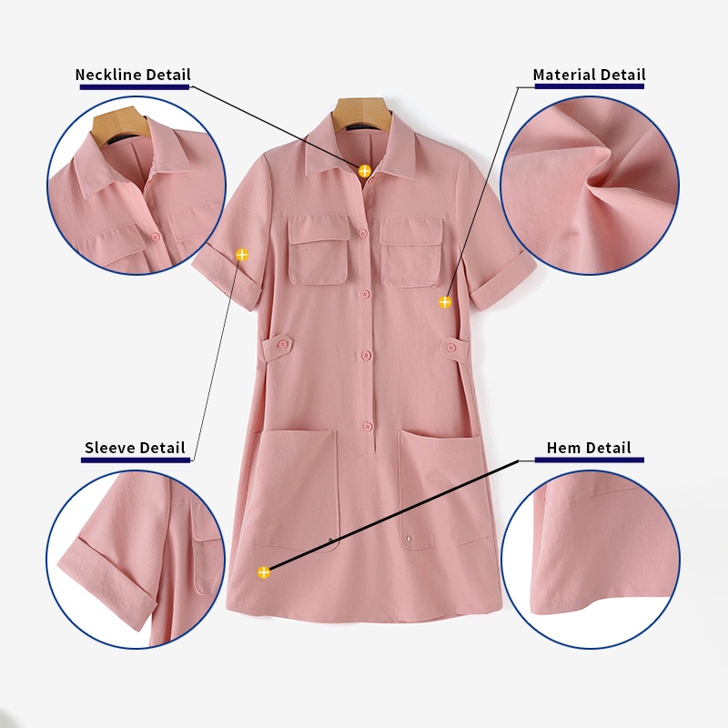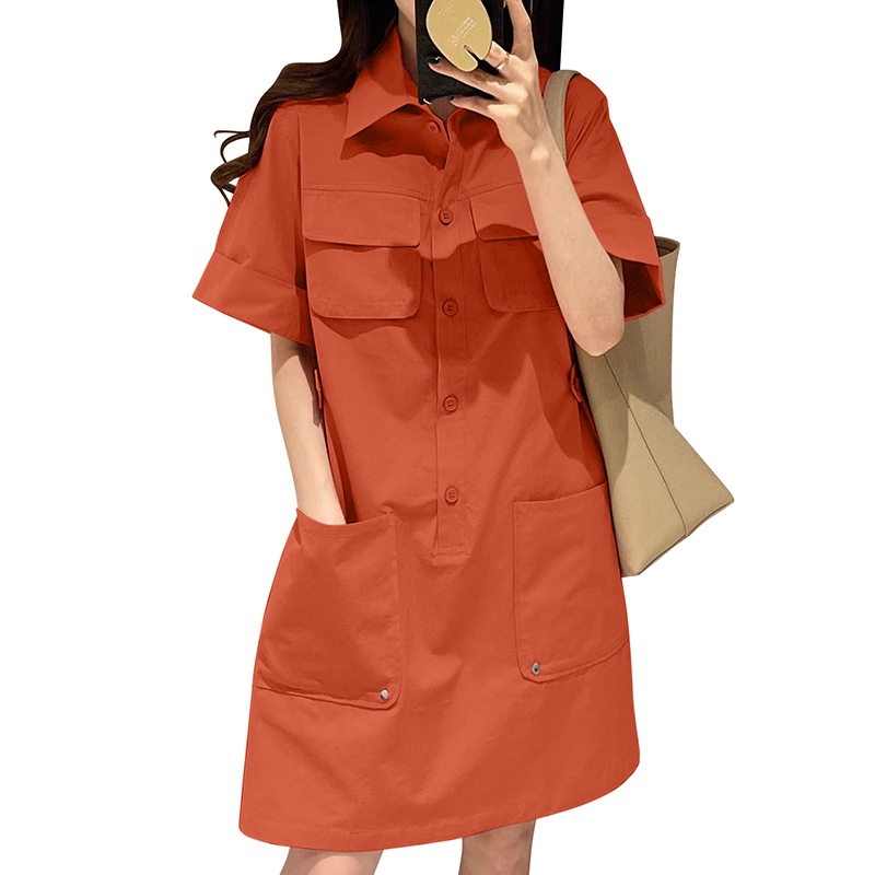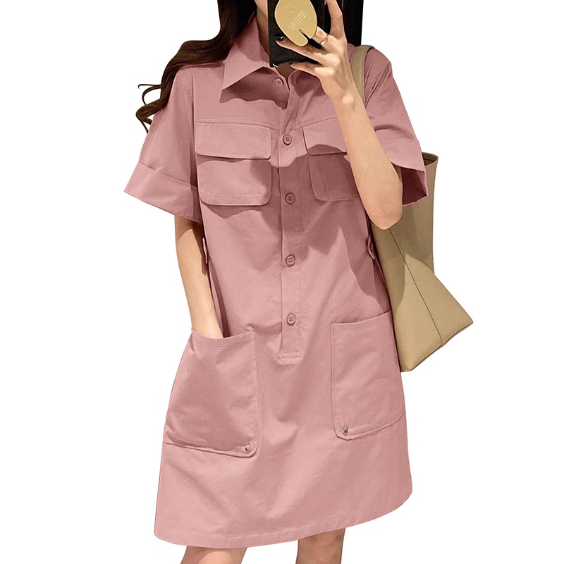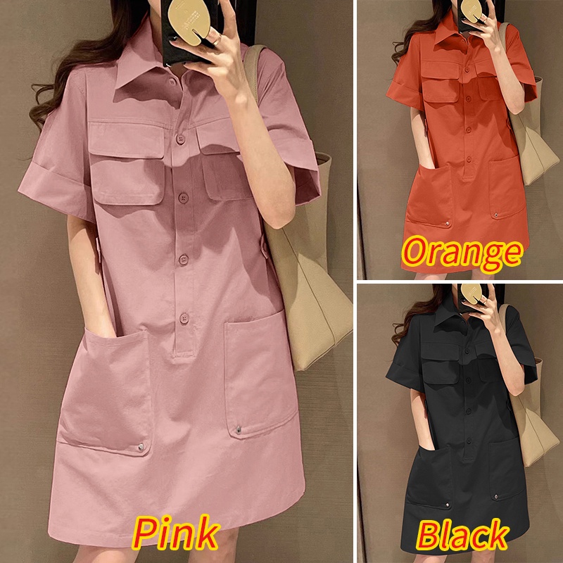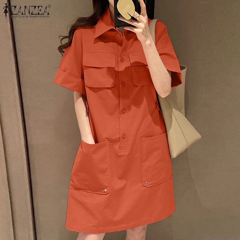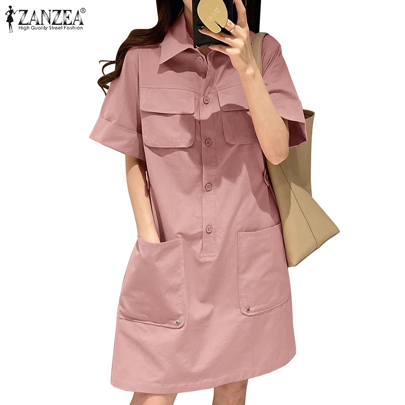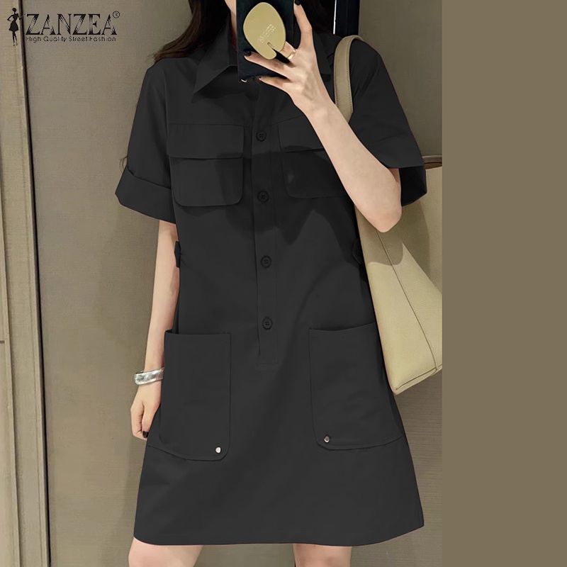 ZANZEA Women Korean Five-Quarter Sleeves Pockets Solid Color Shirtdress