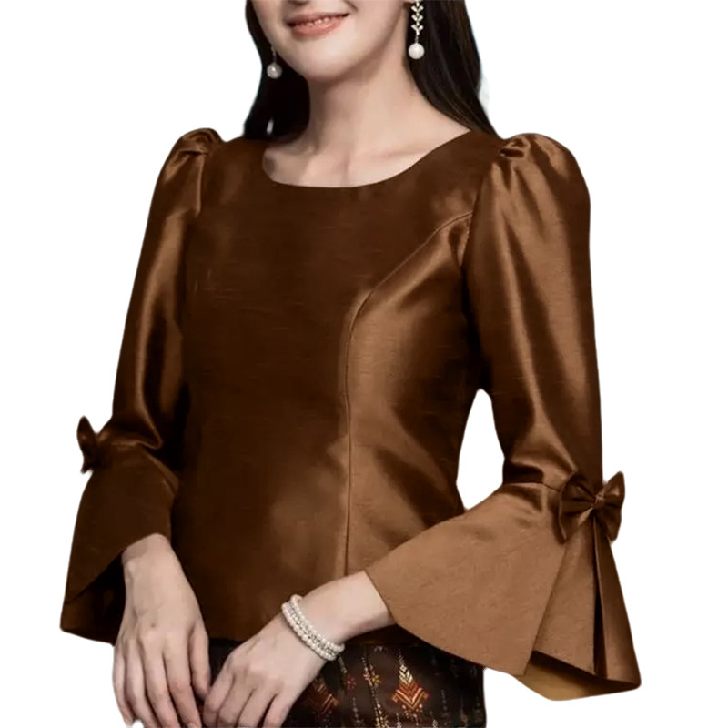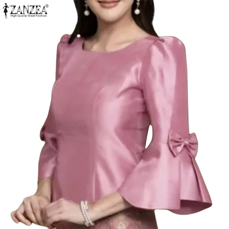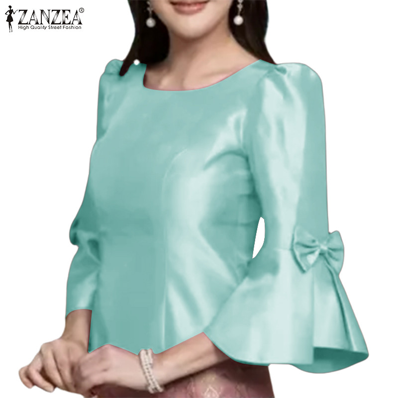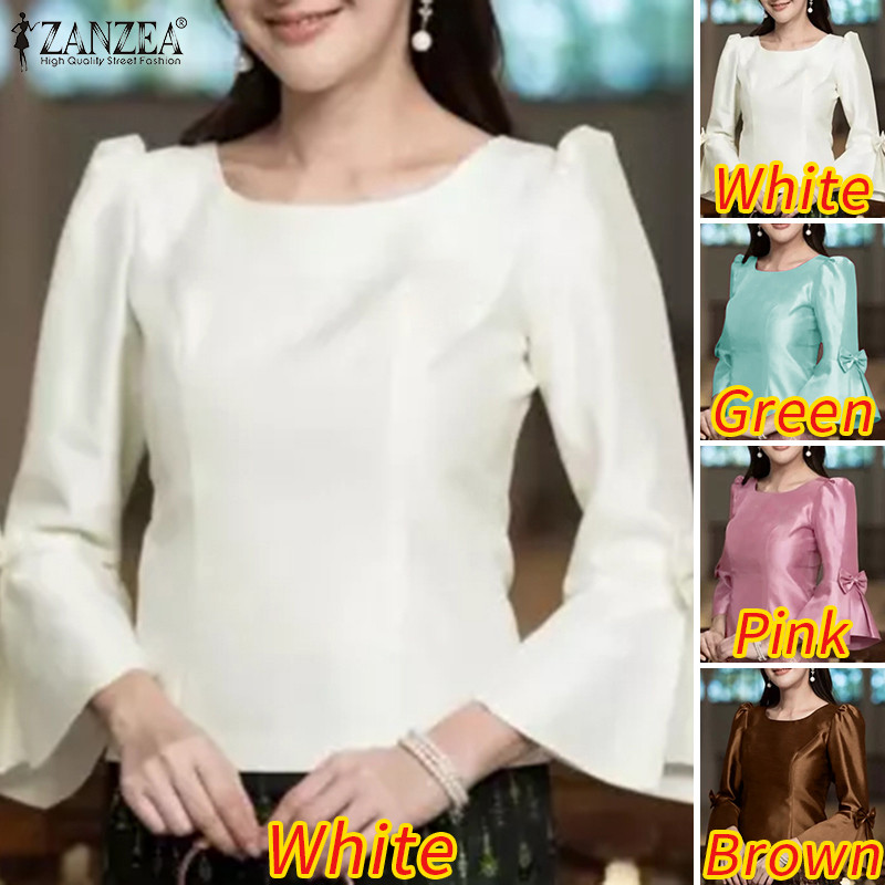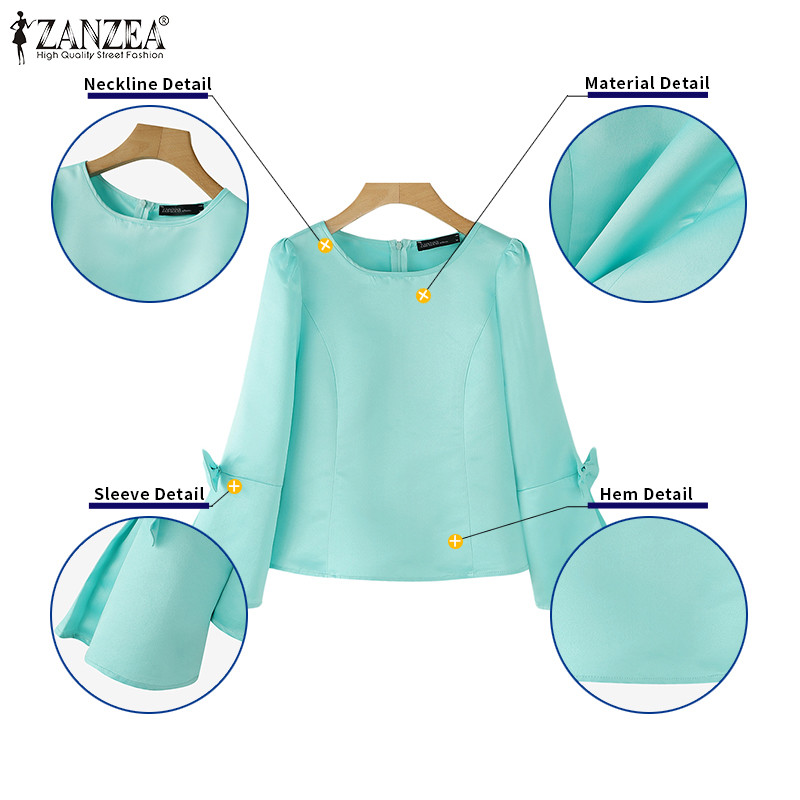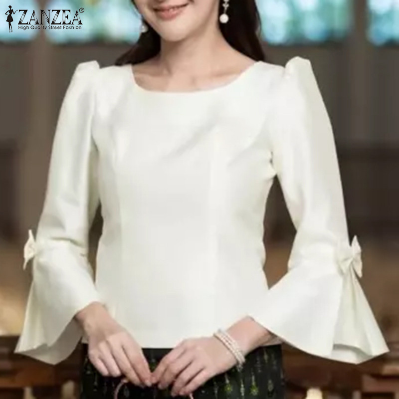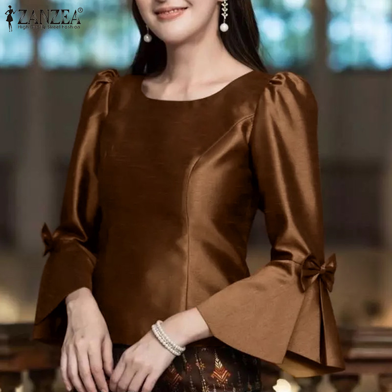 ZANZEA Women Korean Elegant Square Neck Puff Sleeve Waist Cinching Blouses