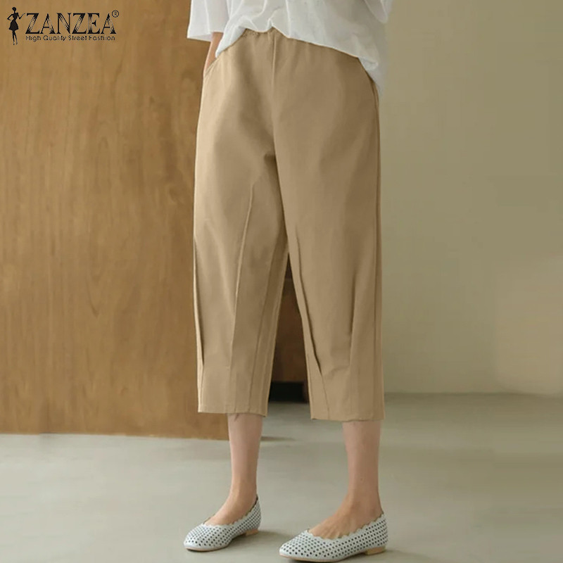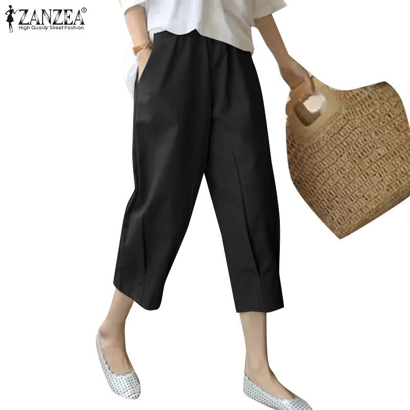 ZANZEA Women Korean Fashion Carrot Octopus Mid Waist Woven Pants