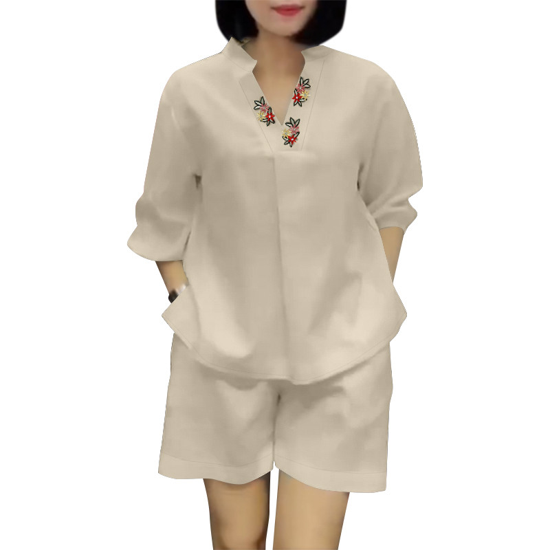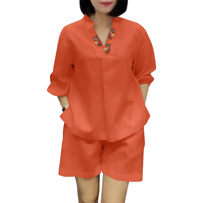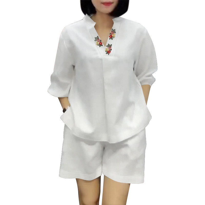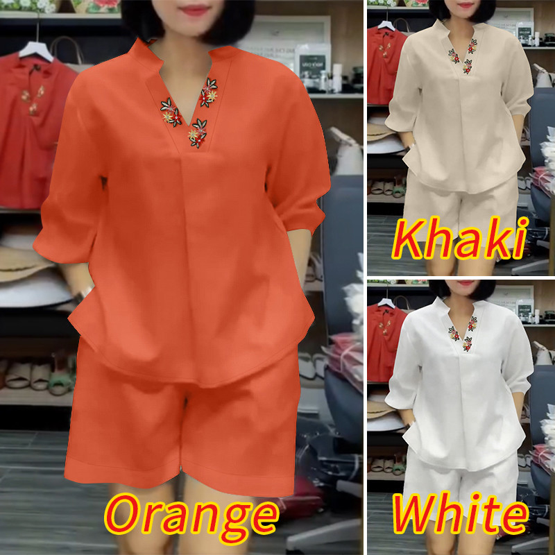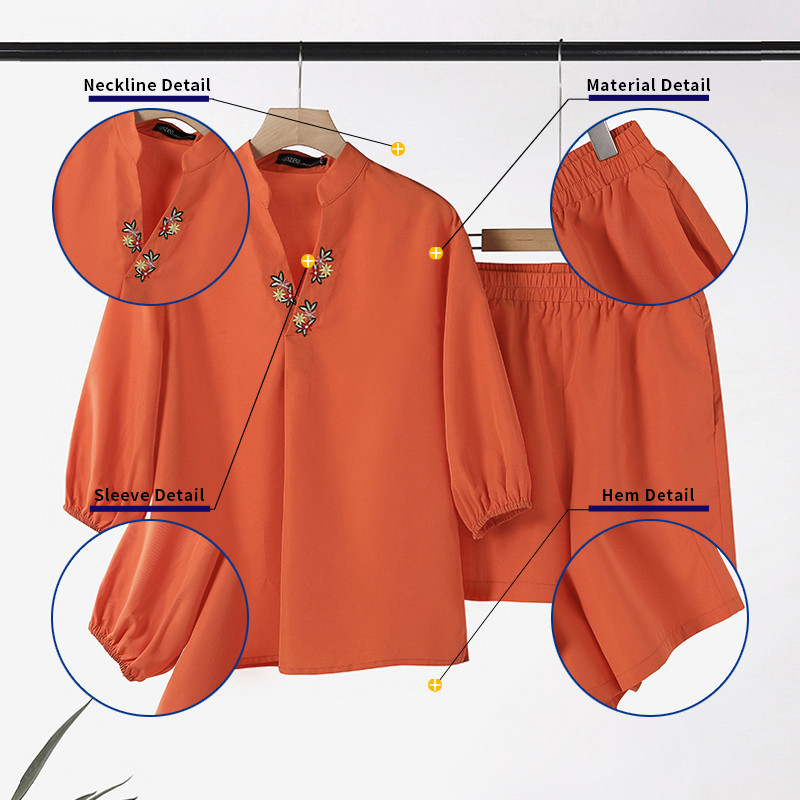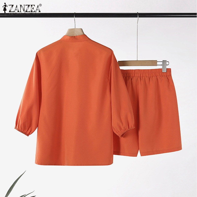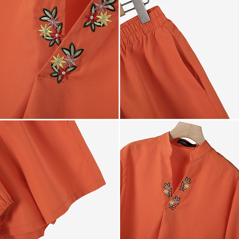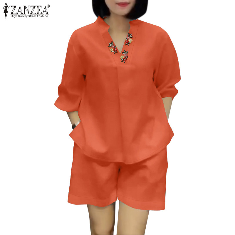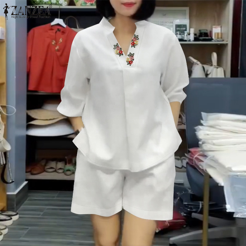 ZANZEA Women Korean Casual V-Neck Floral Embroidered Puff Sleeve Sets