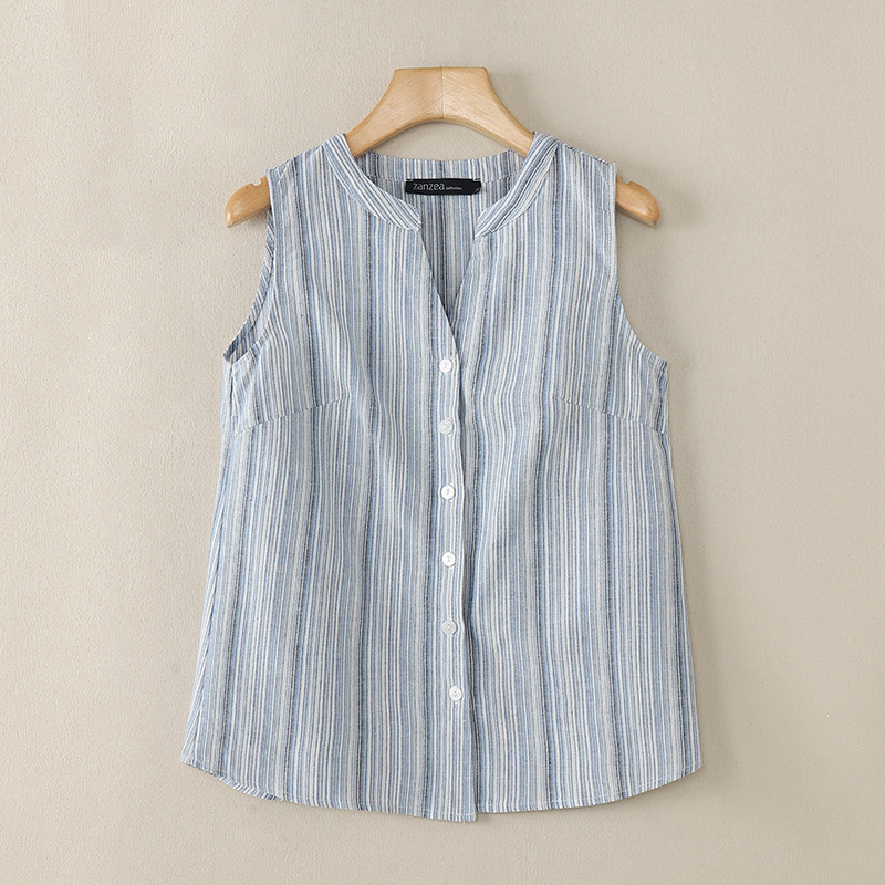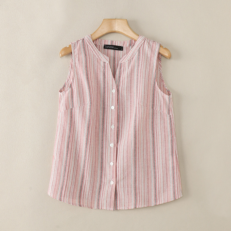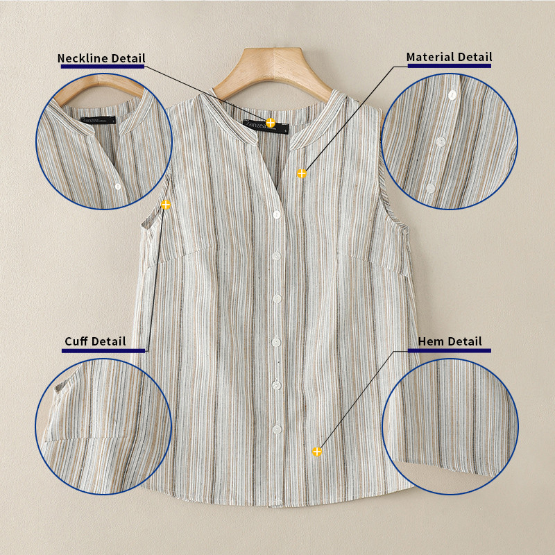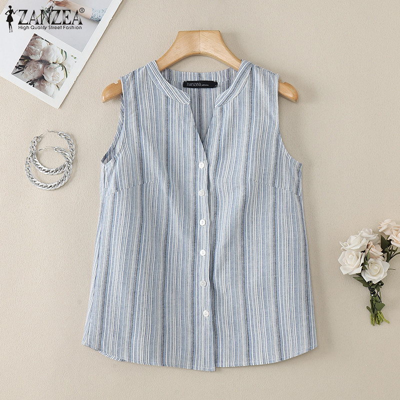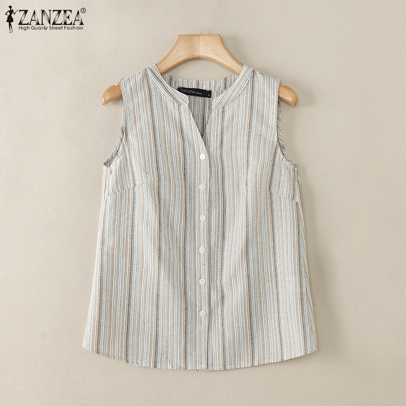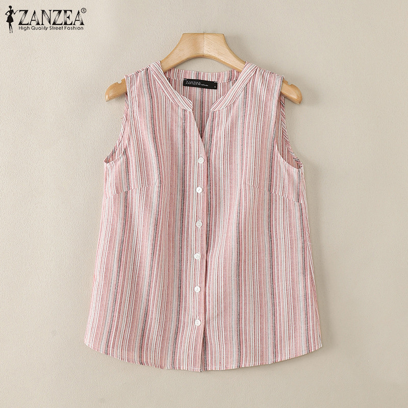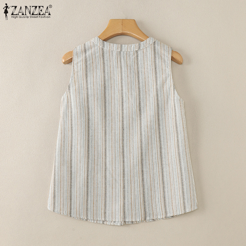 ZANZEA Women Korean Colorful Stripes Patchwork V-Neck Sleeveless Vest