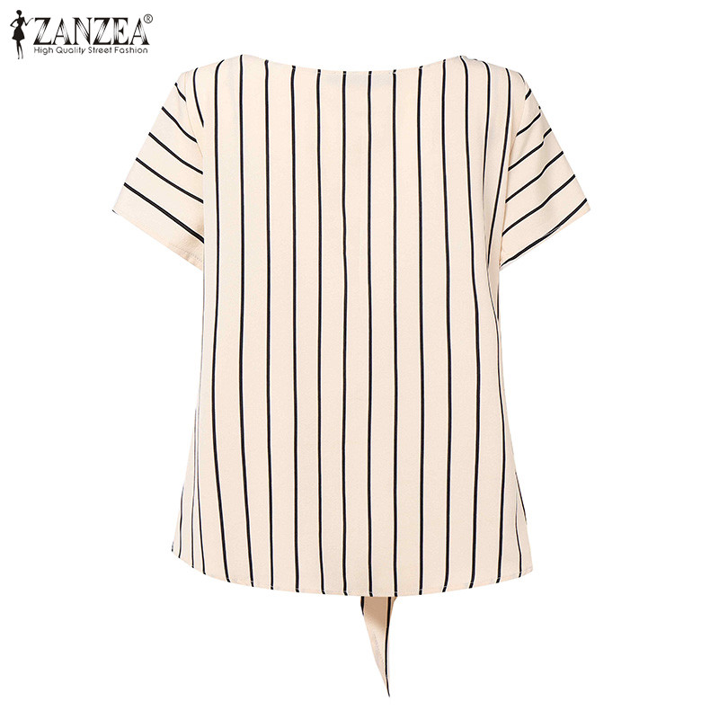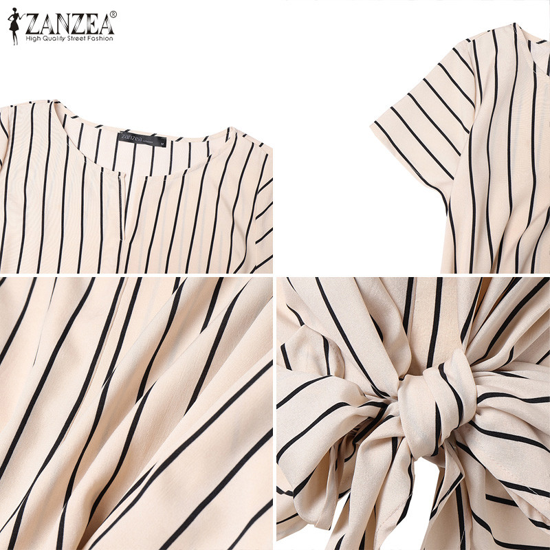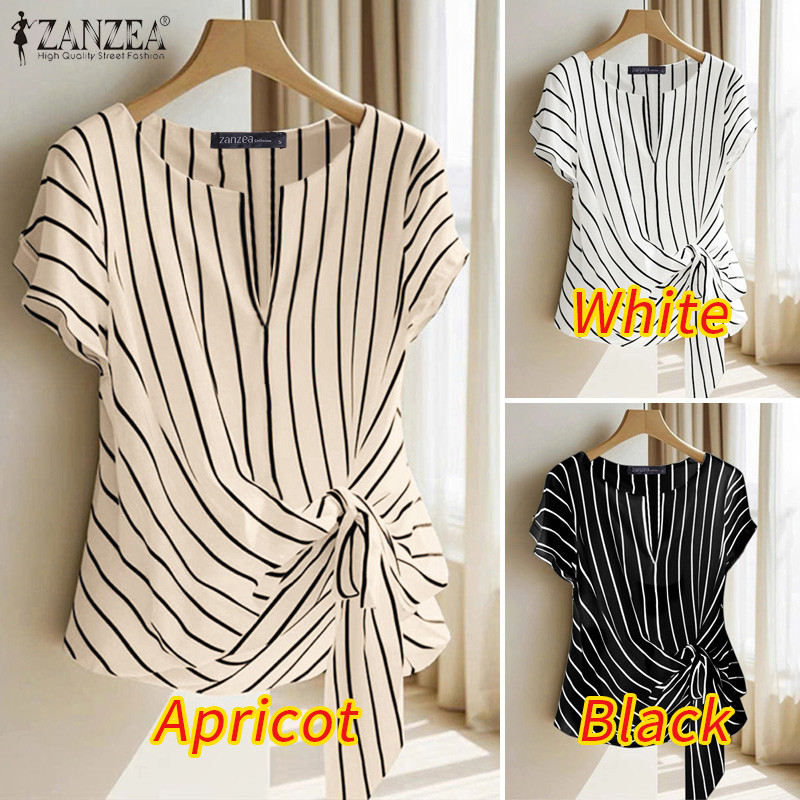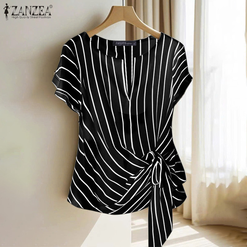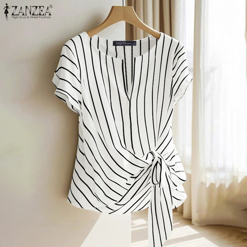 ZANZEA Women Korean Elegant Crew Neck Raglan Sleeve Kink Design Stripe Blouses