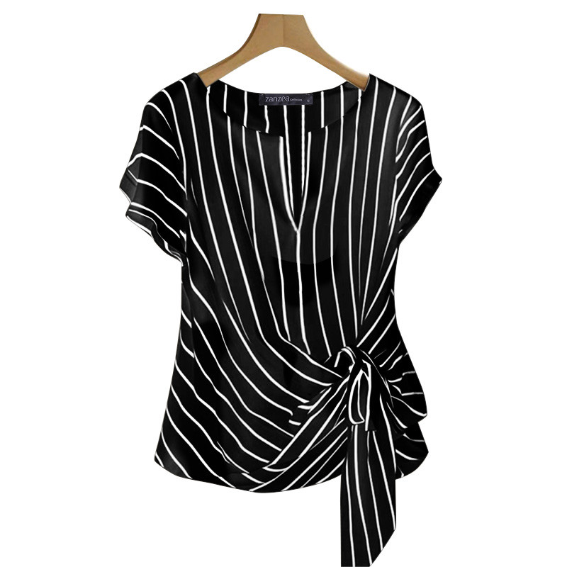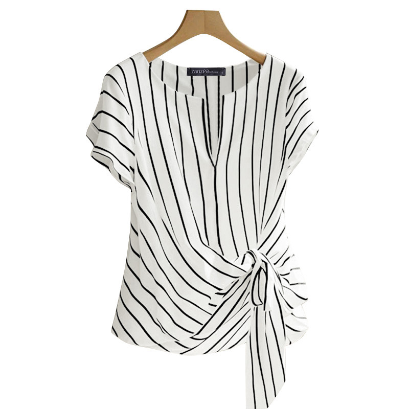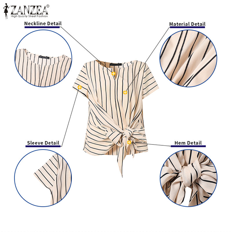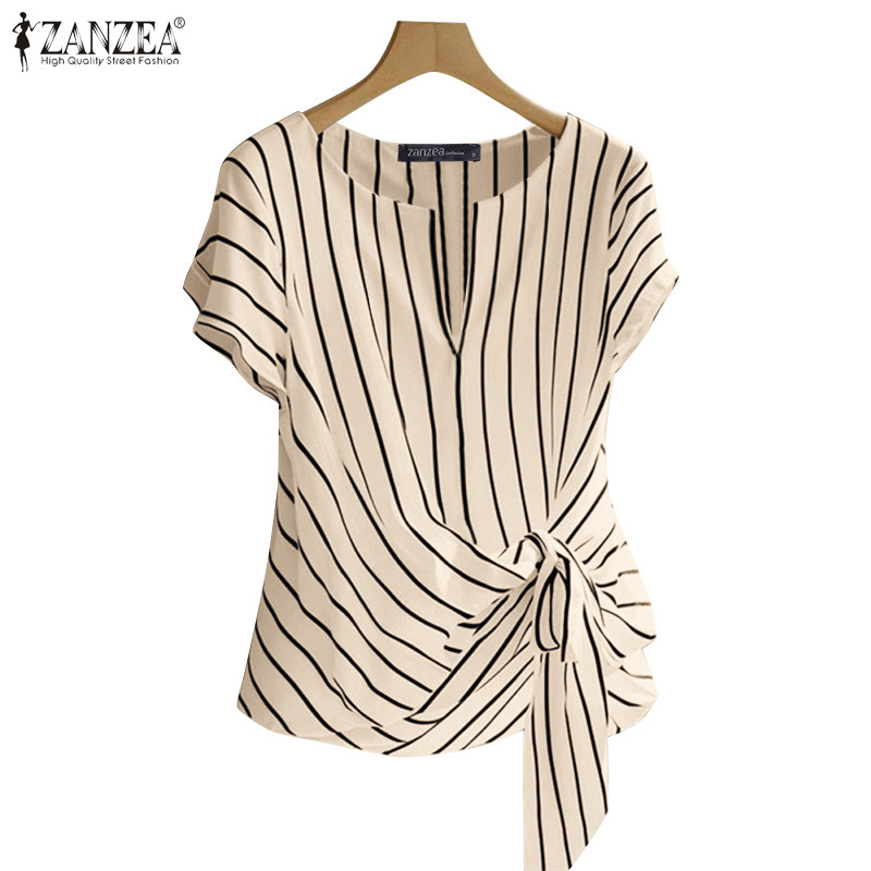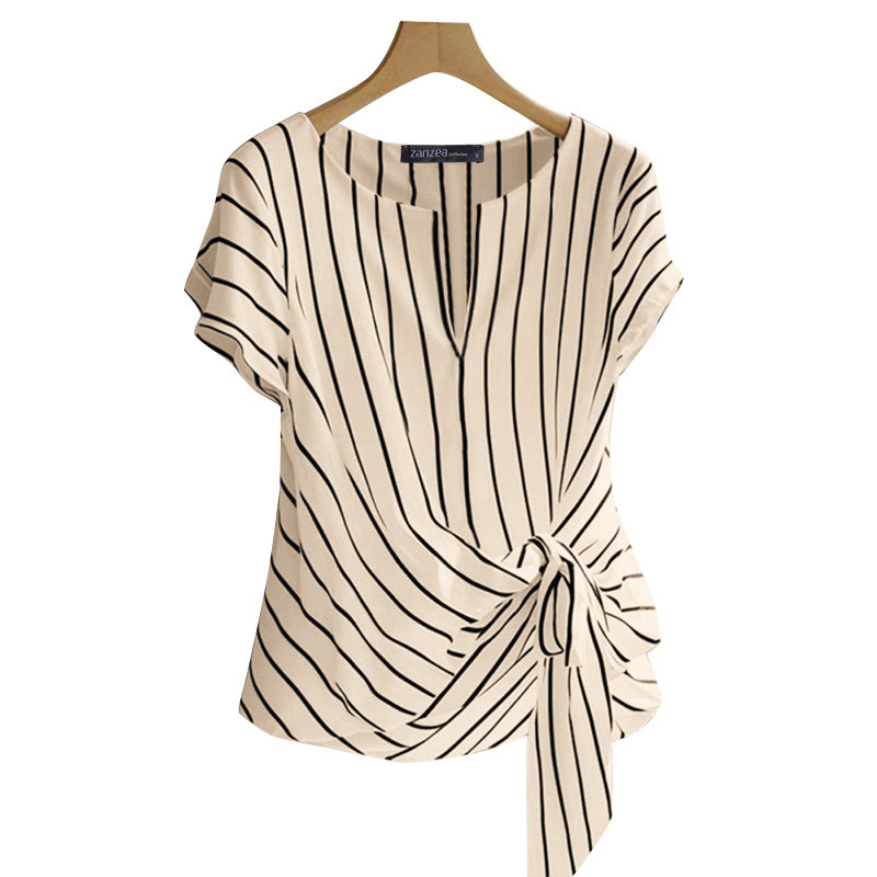 ZANZEA Women Korean Elegant Crew Neck Raglan Sleeve Kink Design Stripe Blouses