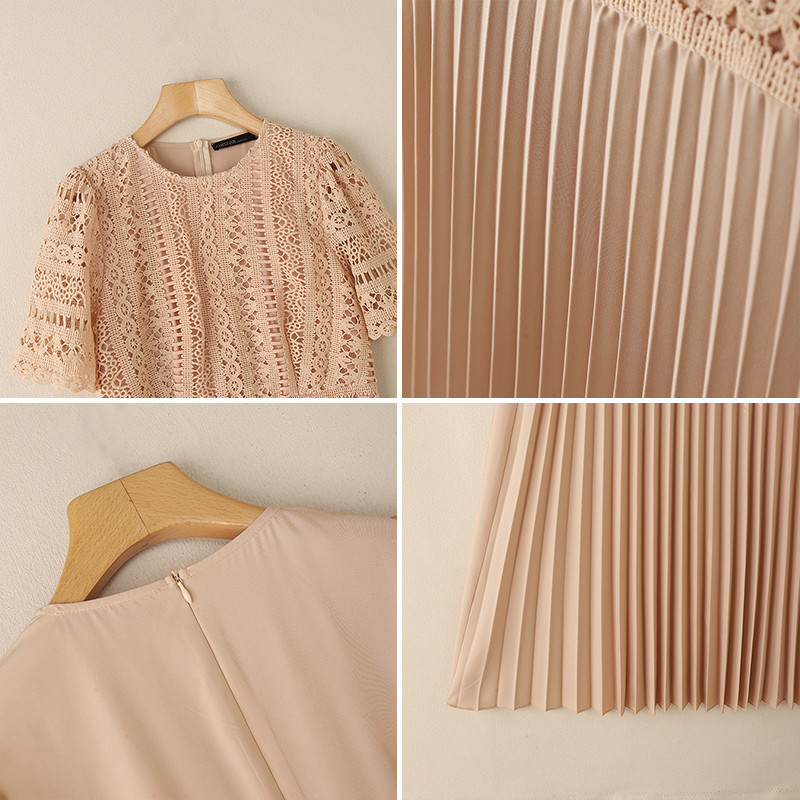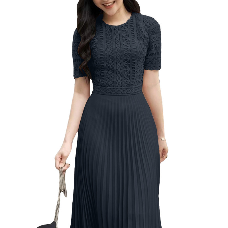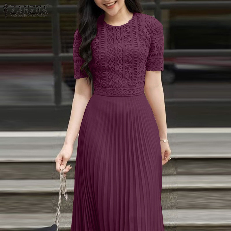 ZANZEA Women Korean Fashion Party Lace Short Sleeve High Waist Pleated A-Line Dress