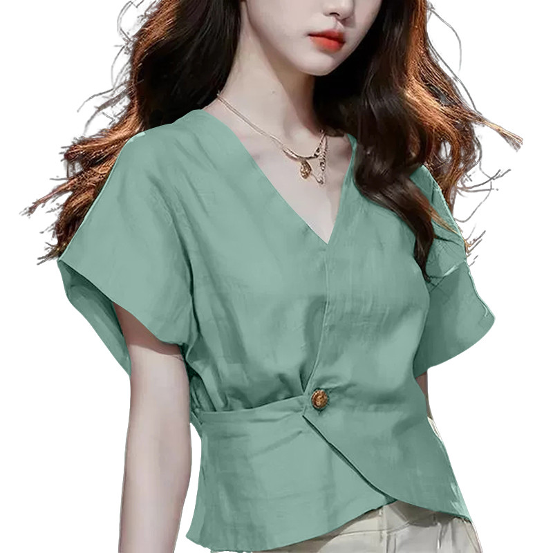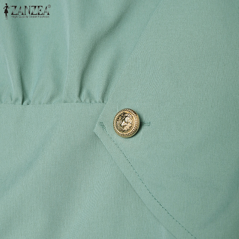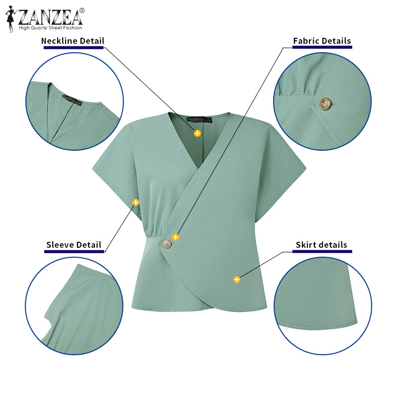 ZANZEA Women Korean Casual V Neck Cap Short Sleeve Solid Color Blouses