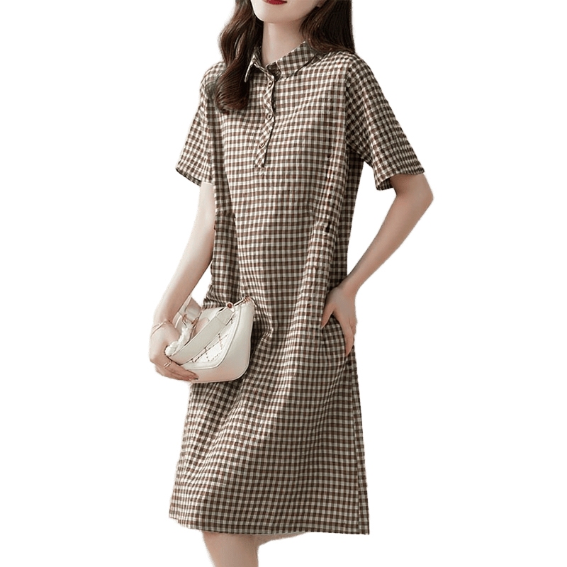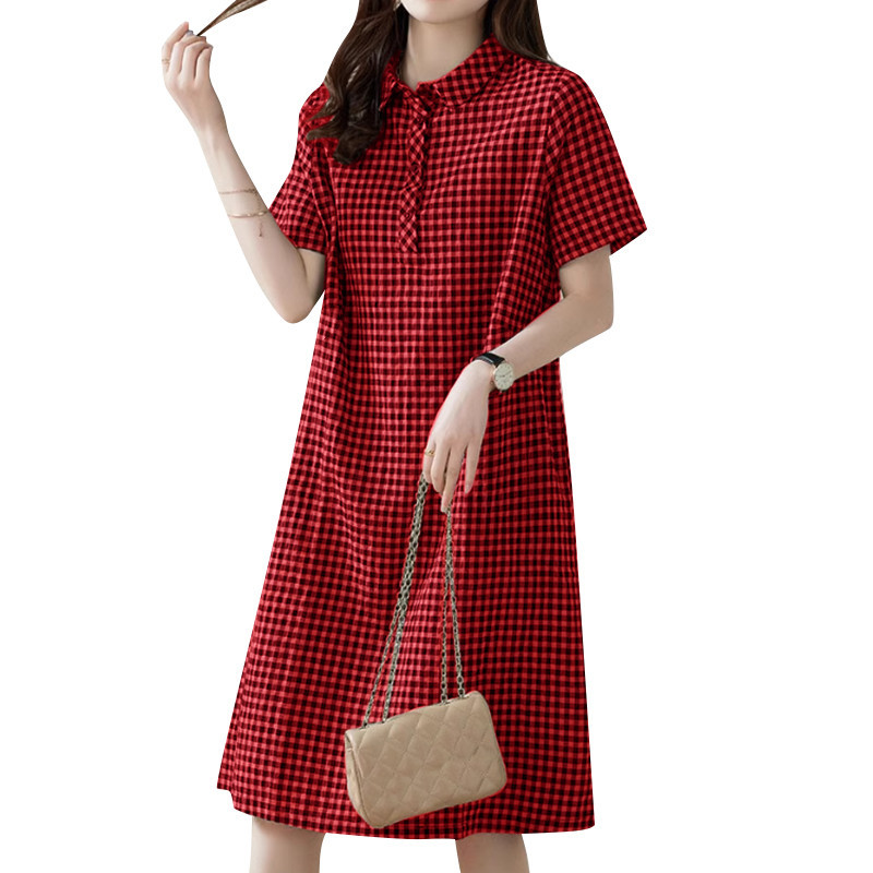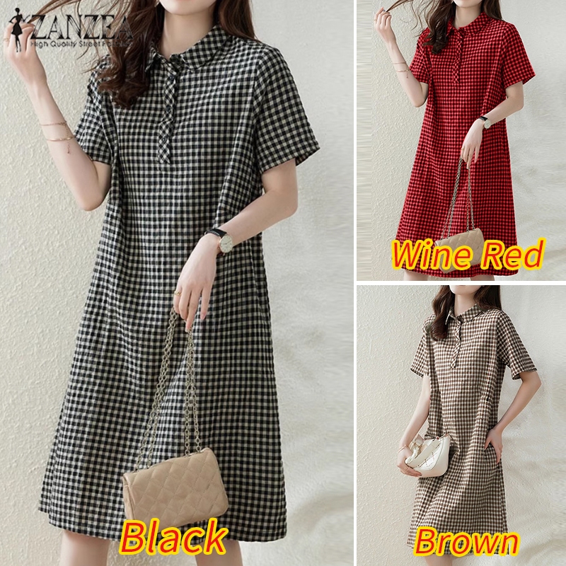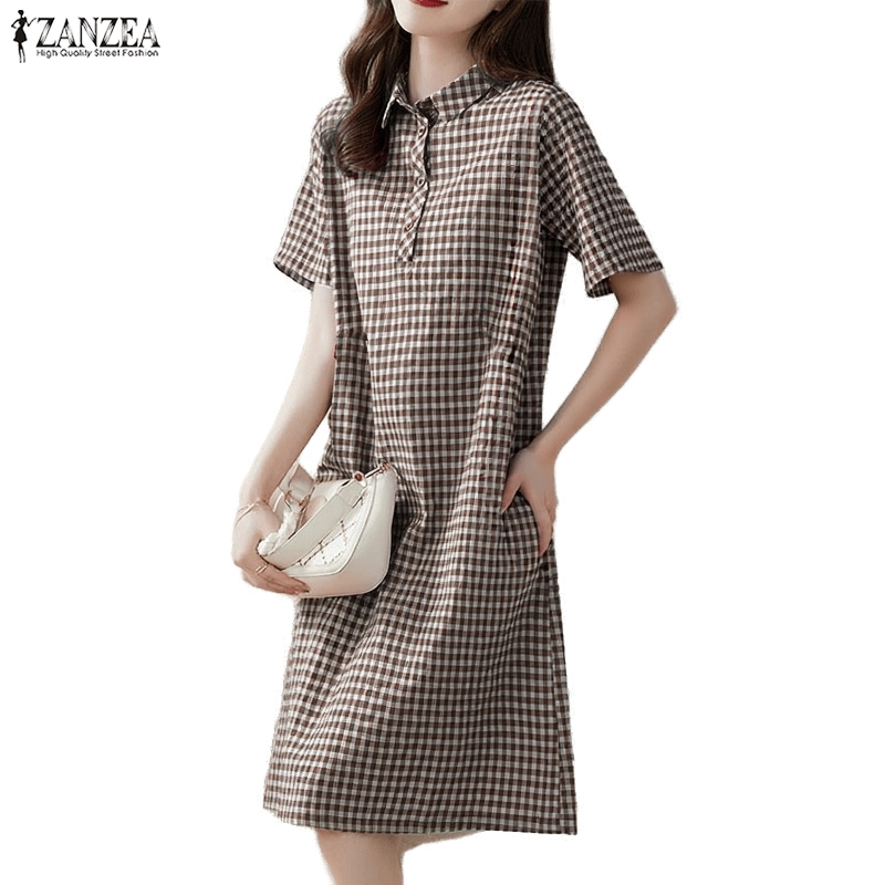 ZANZEA Women Korean Casual Shirt Collar Short Sleeve Plaid Loose Dresses