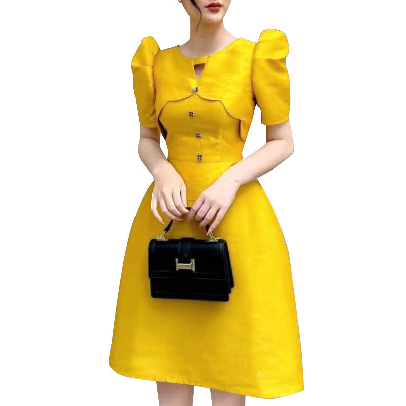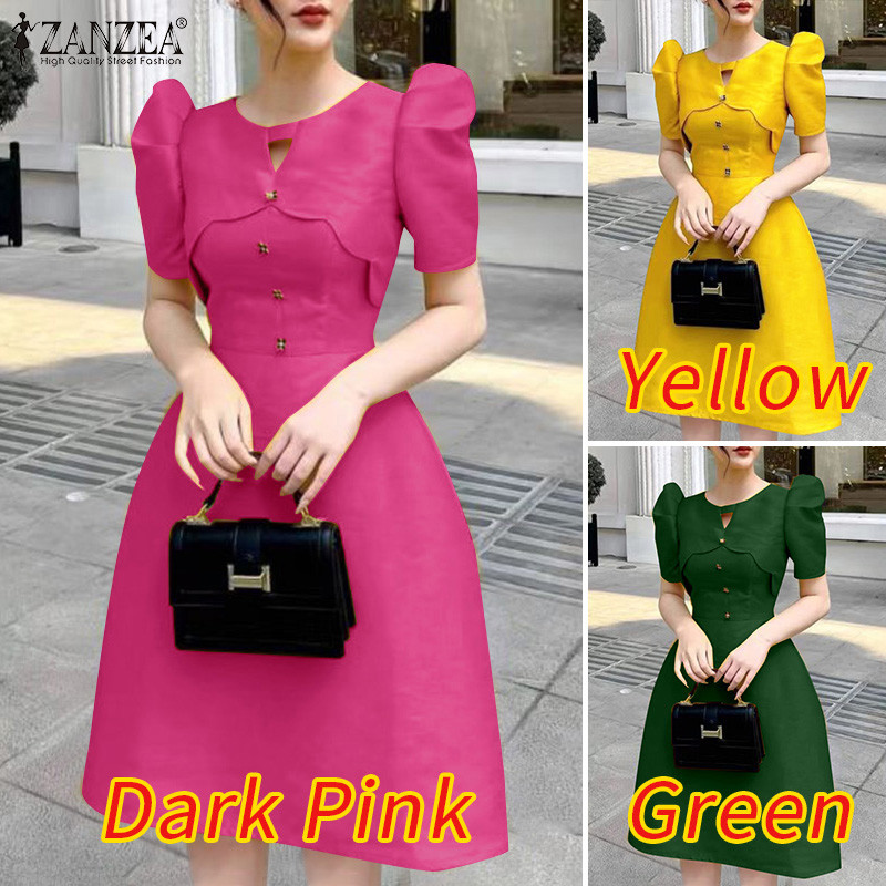 ZANZEA Women Korean Fashion Solid Elegant Puff Sleeve Round Neck Dress